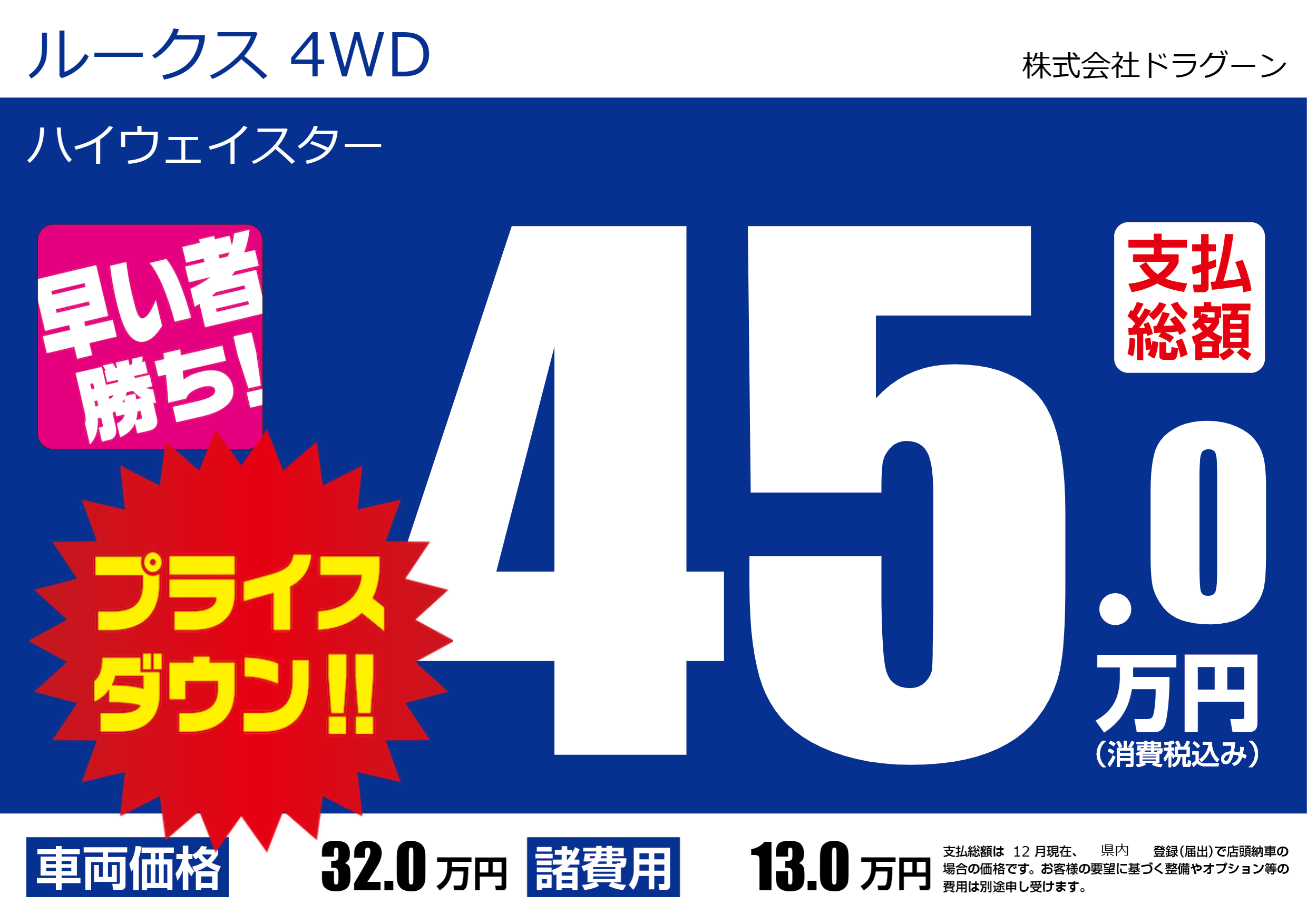 | 車名 | ルークス 4WD | グレード ミッション 排気量 |