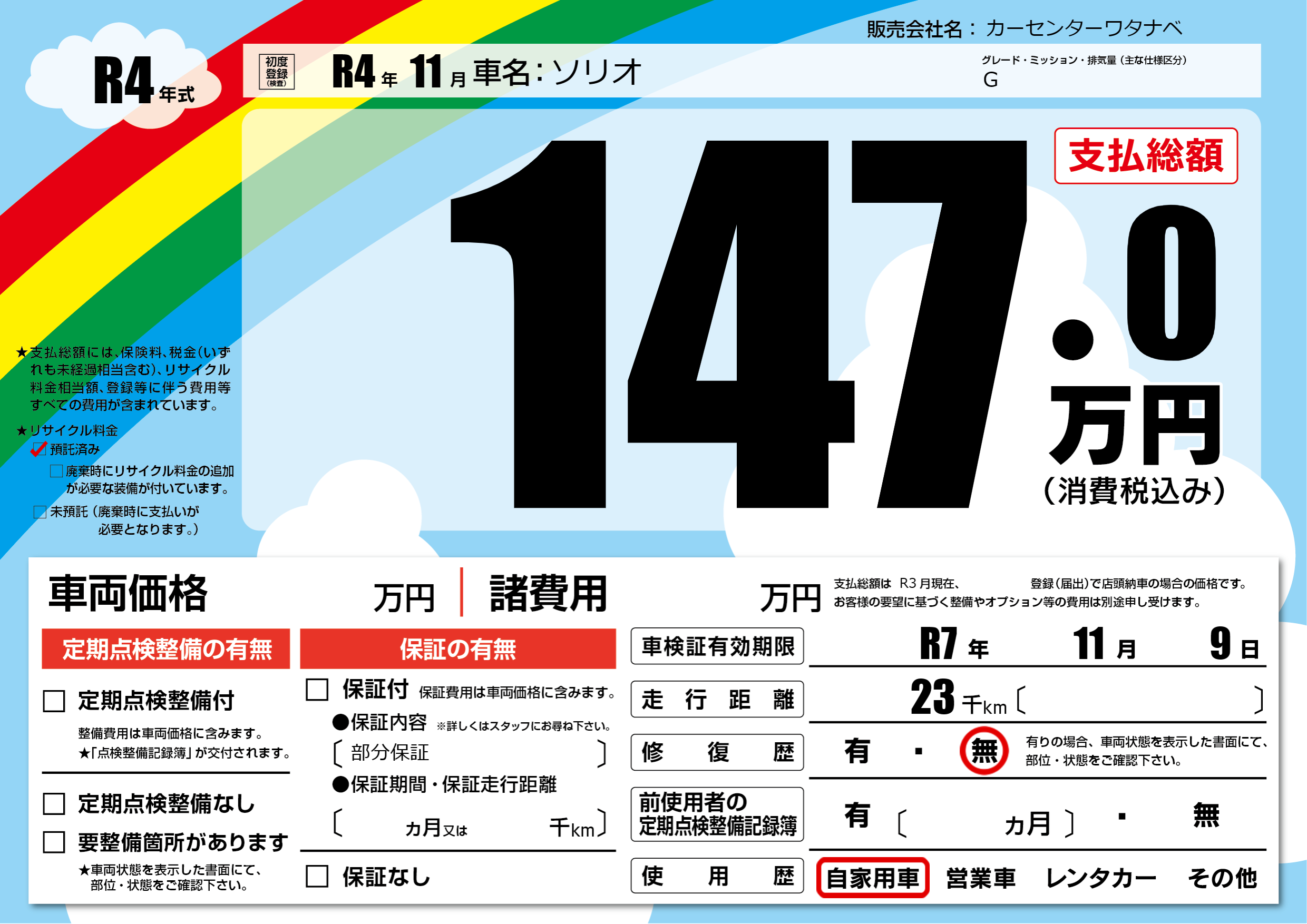 | 車名 | ソリオ | グレード ミッション 排気量 |