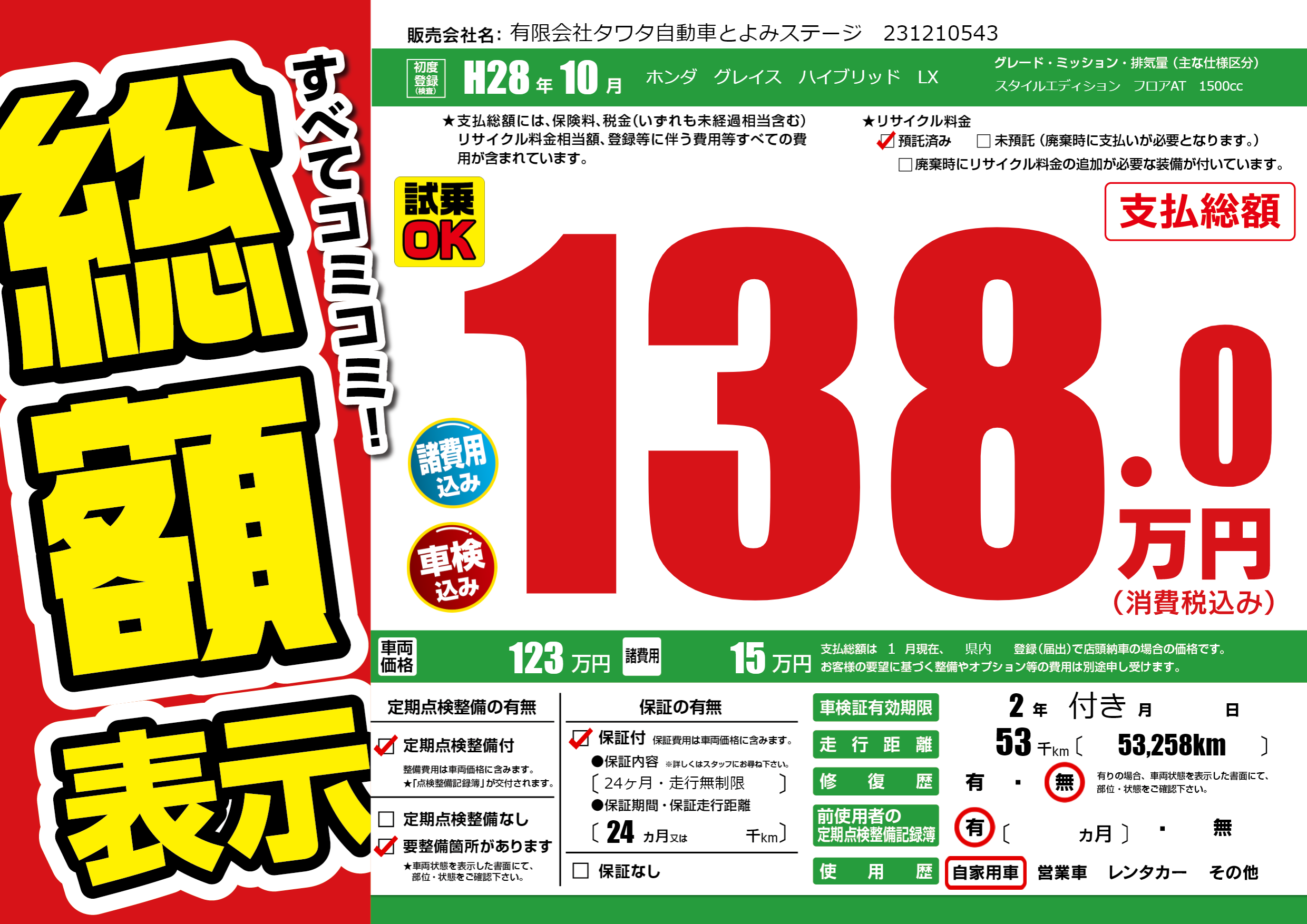 | 車名 | ホンダ グレイス ハイブリッド LX | グレード ミッション 排気量 |