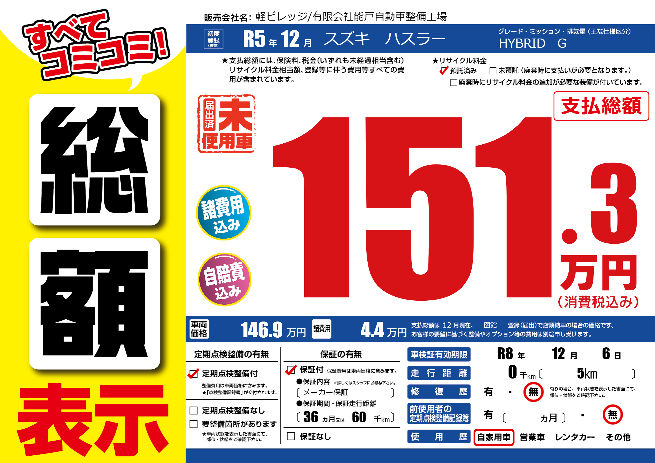 | 走行キロ | - | 初年度登録 | R5年12月 |