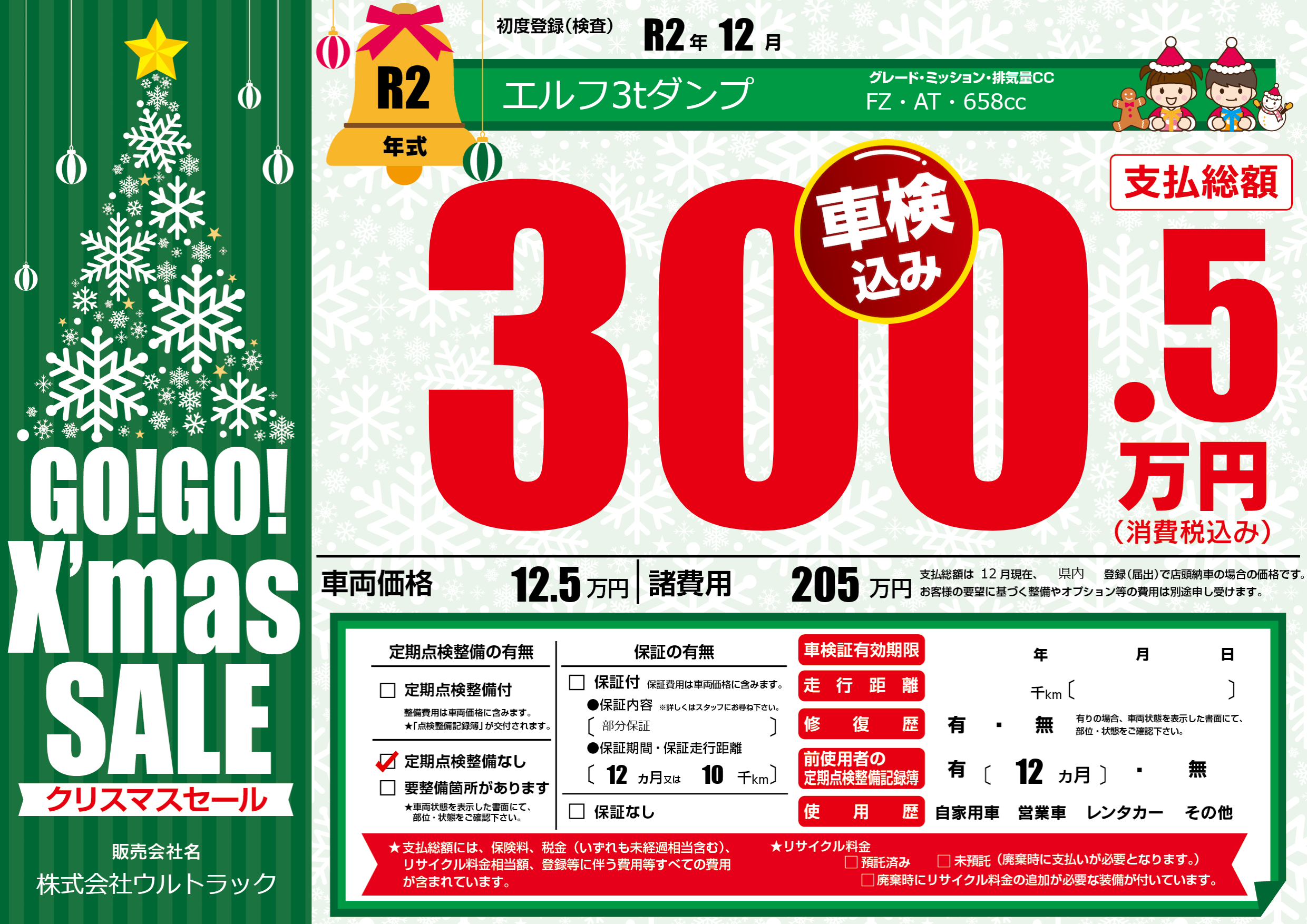 | 走行キロ | - | 初年度登録 | R2年12月 |