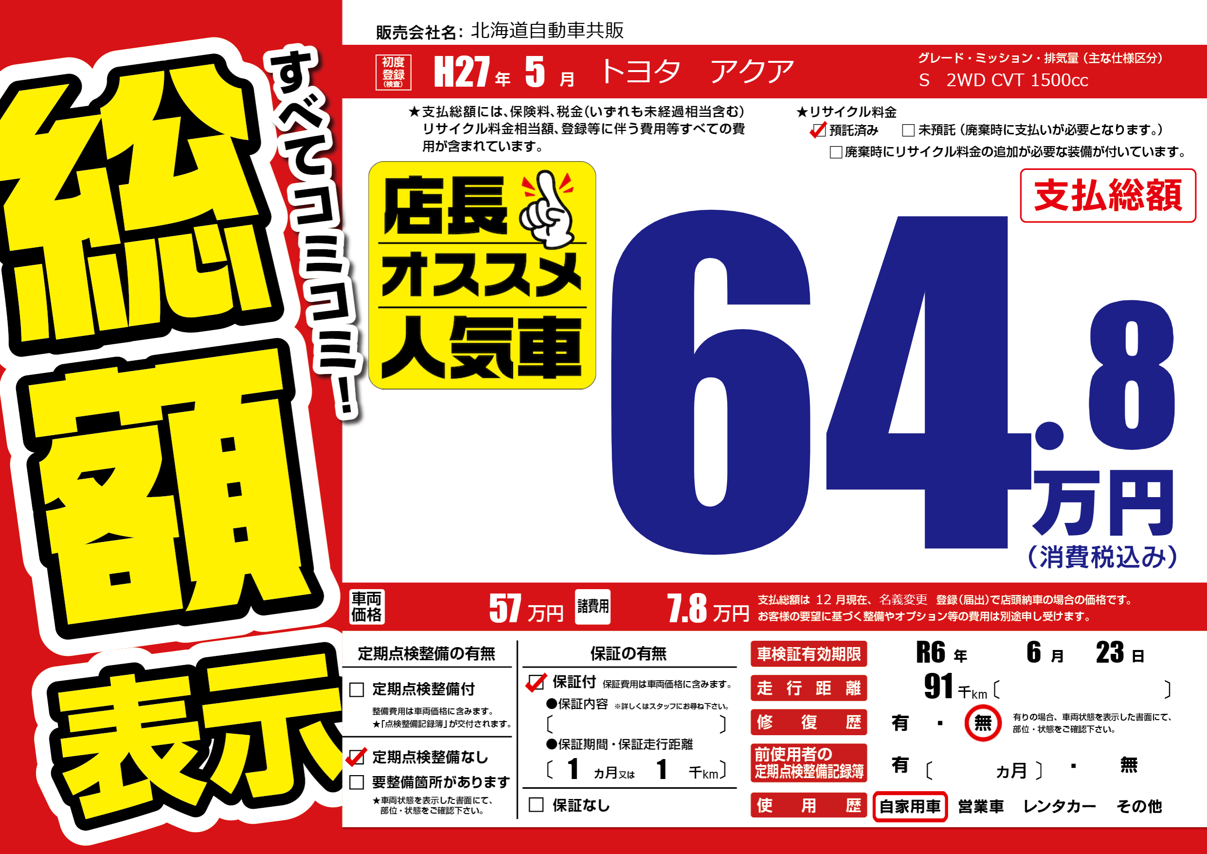 なし | 車検制限 | R6年6月23月 |