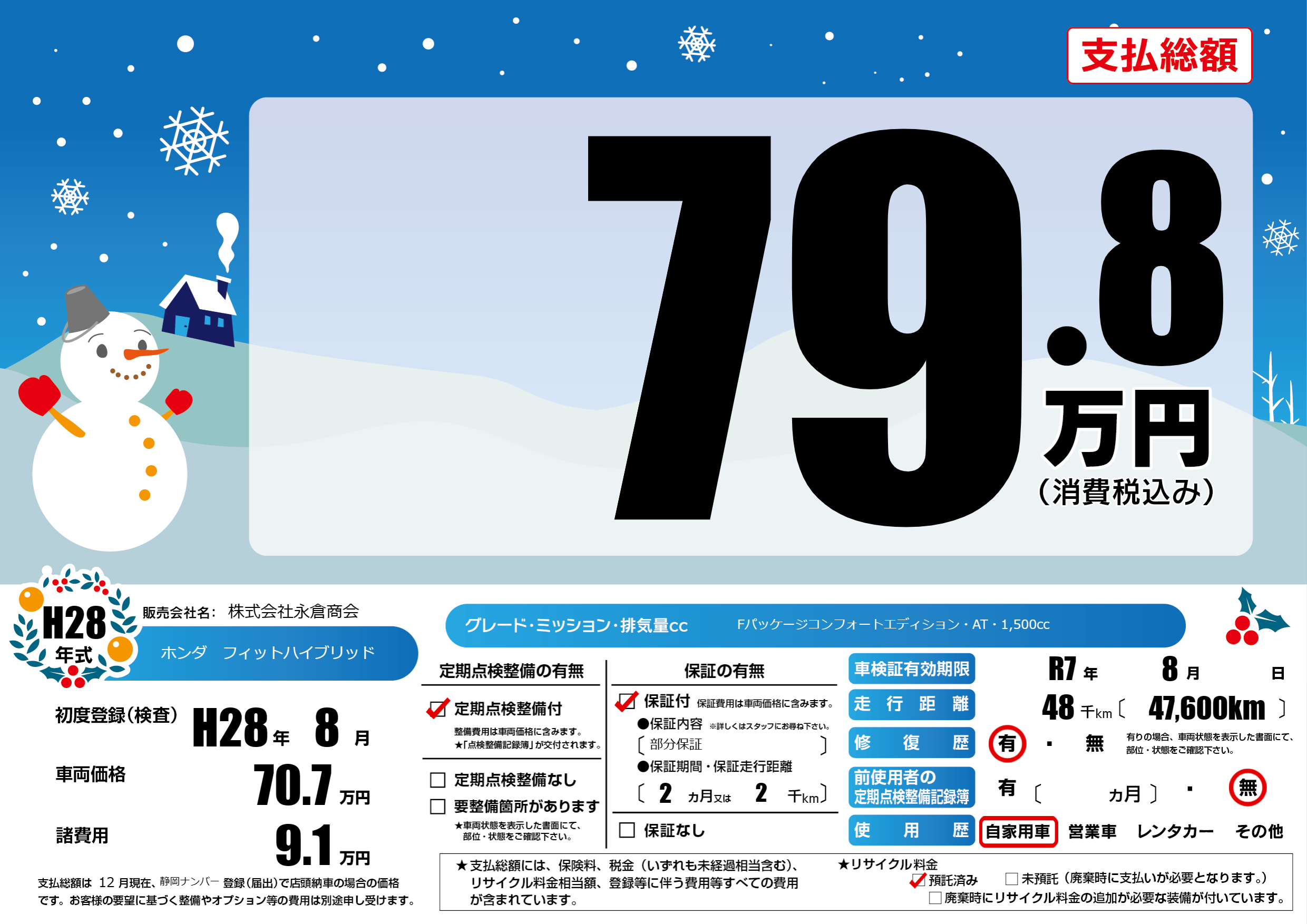 | 車名 | ホンダ フィットハイブリッド | グレード ミッション 排気量 |