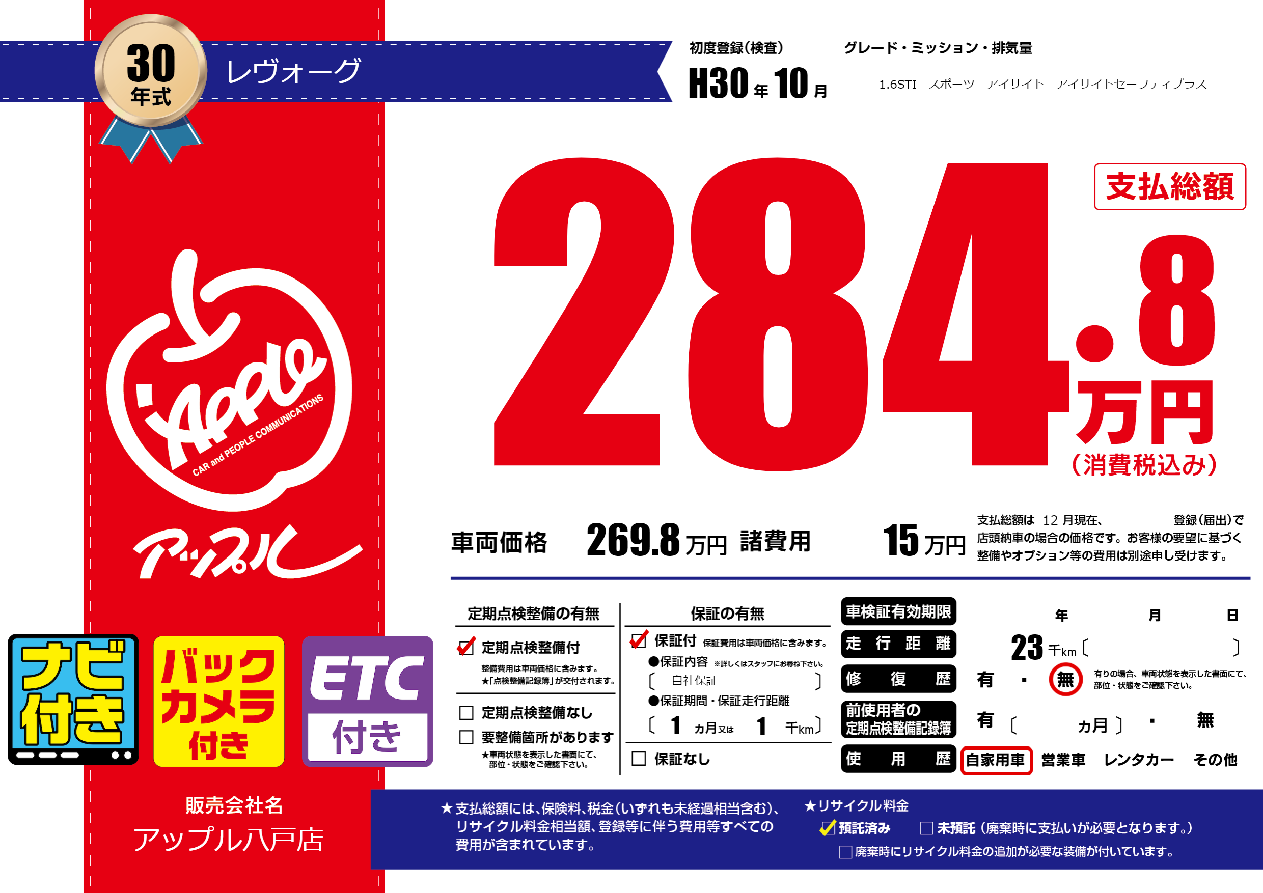 | 初年度登録 | H30年10月 | ||
