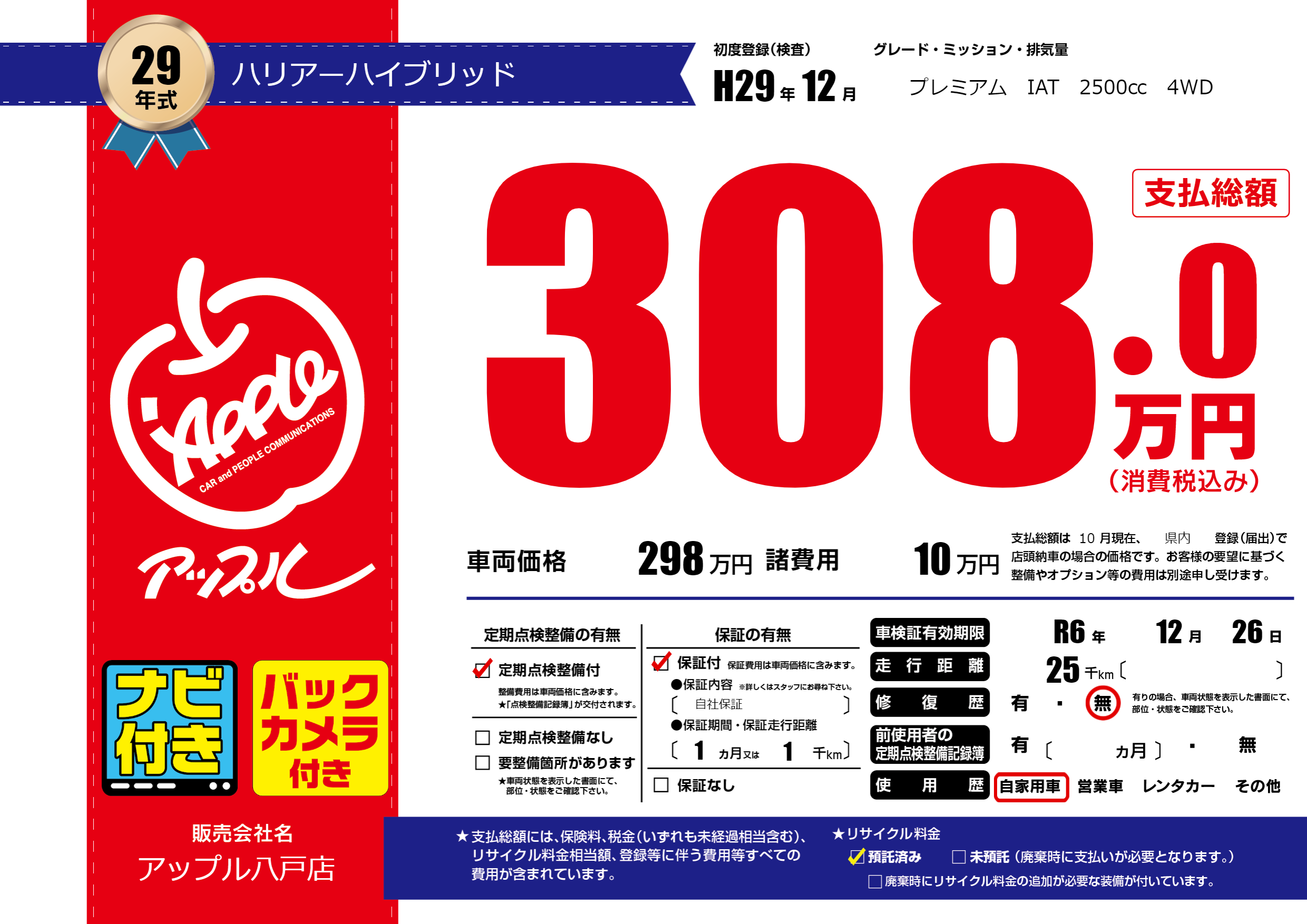 | 車名 | ハリアーハイブリッド | グレード ミッション 排気量 |