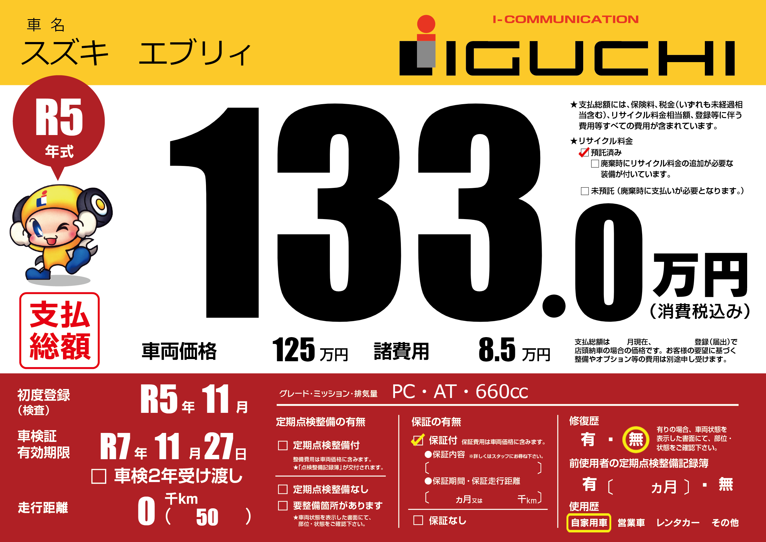 なし | 車検制限 | R7年11月27月 |