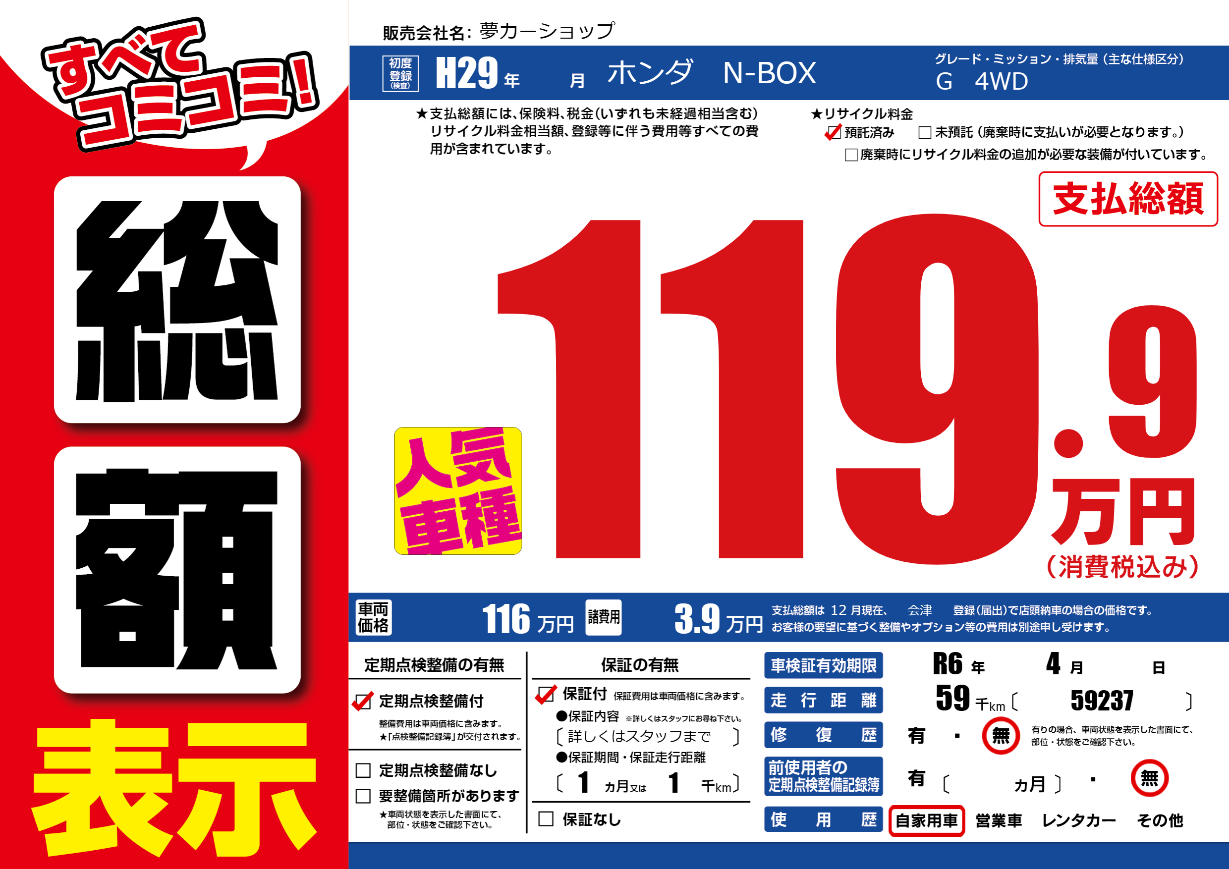 | 車検制限 | R6年 4月 - 日 | ||