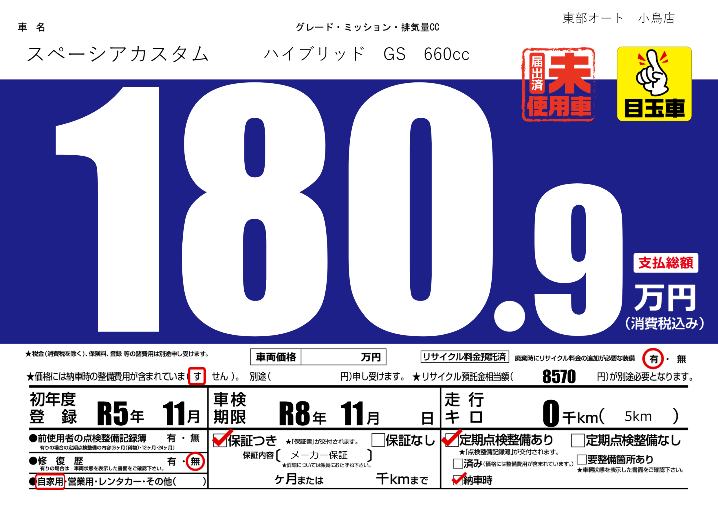 | 定期点検整備 | 定期点検整備あり 納車時あり | ||