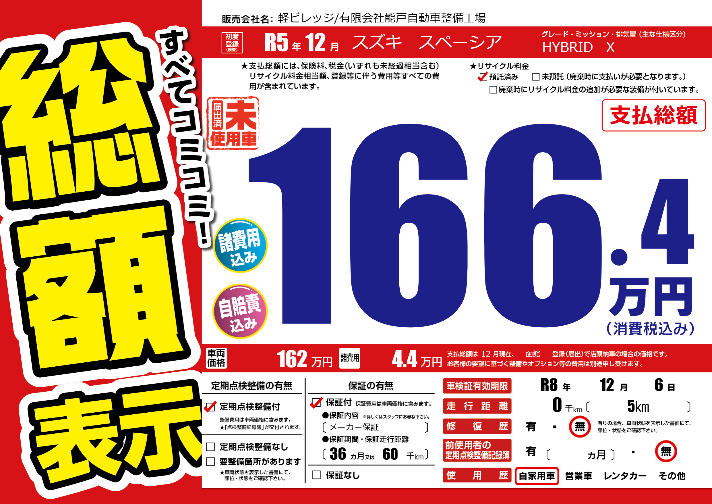 | 走行キロ | - | 初年度登録 | R5年12月 |