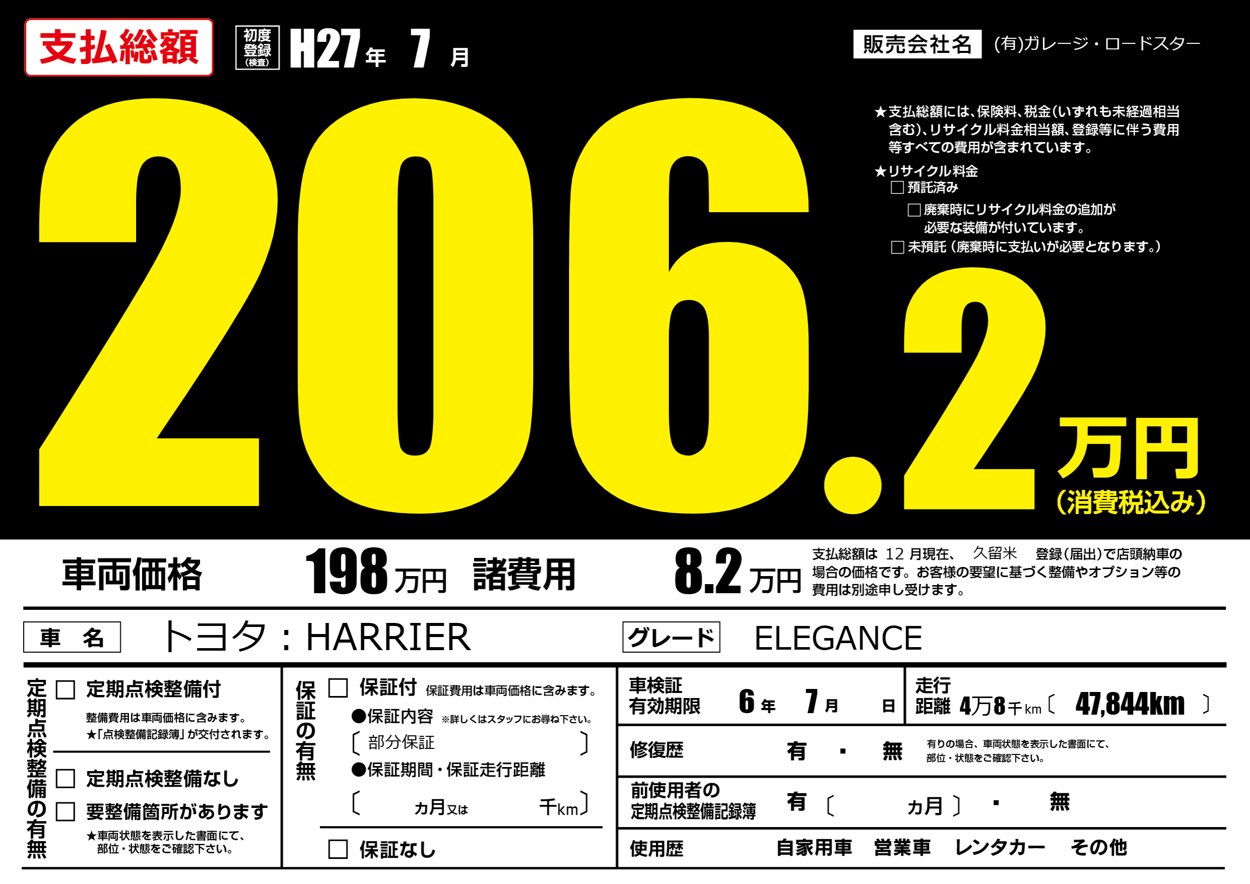 | 車検制限 | 6年 7月 - 日 | ||