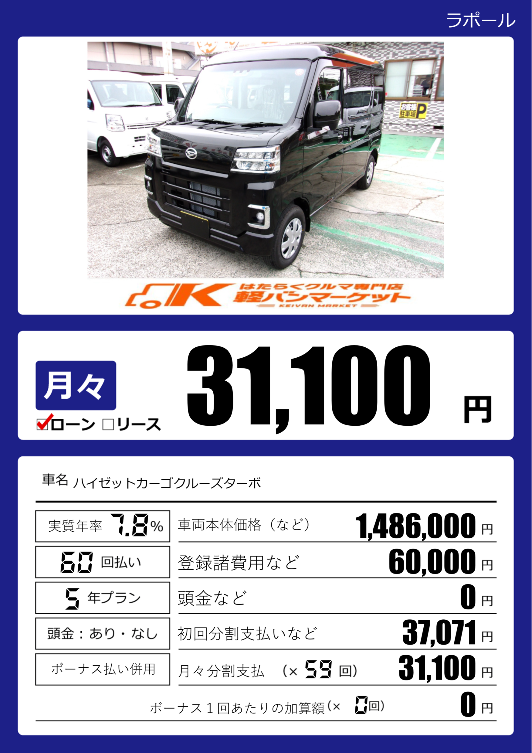 | 車名 | ハイゼットカーゴクルーズターボ | グレード ミッション 排気量 |