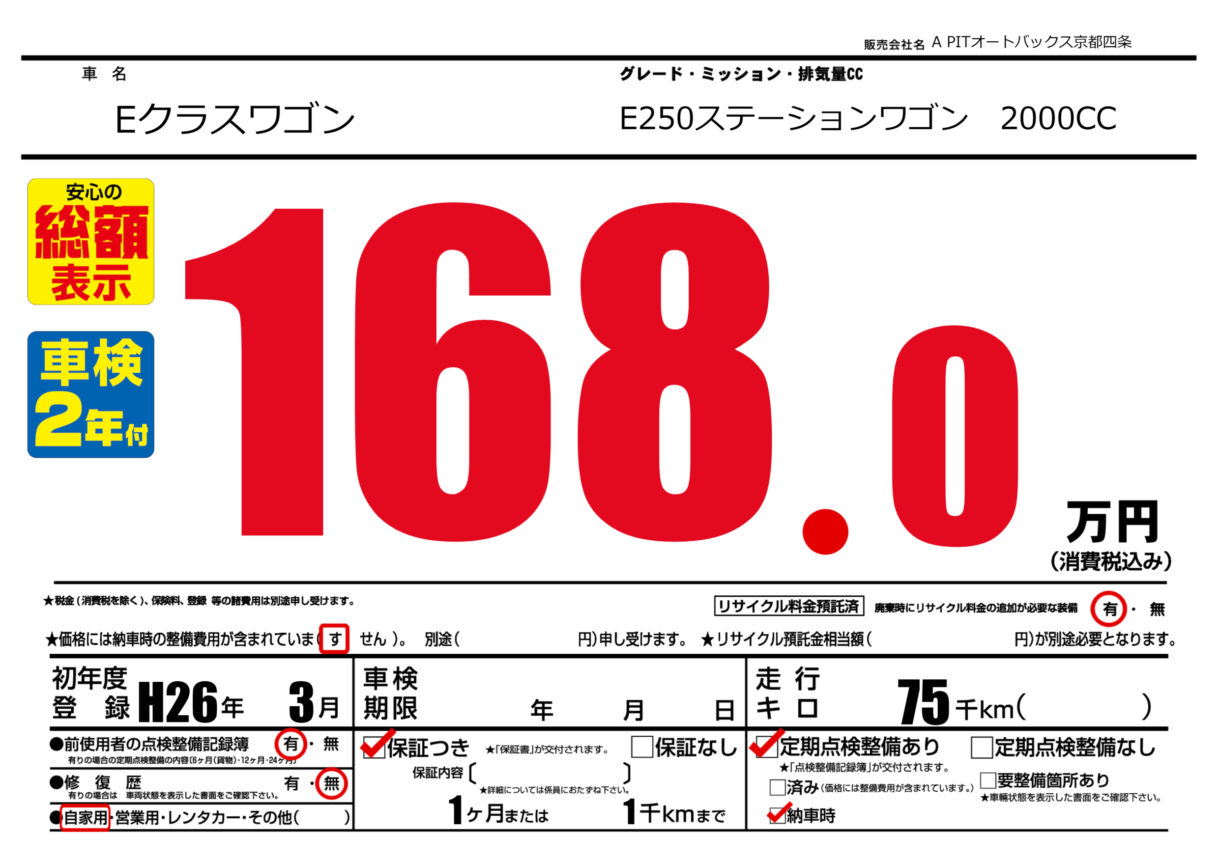 保証付き 保証内容(---) 1ヶ月または(1)千kmまで |
