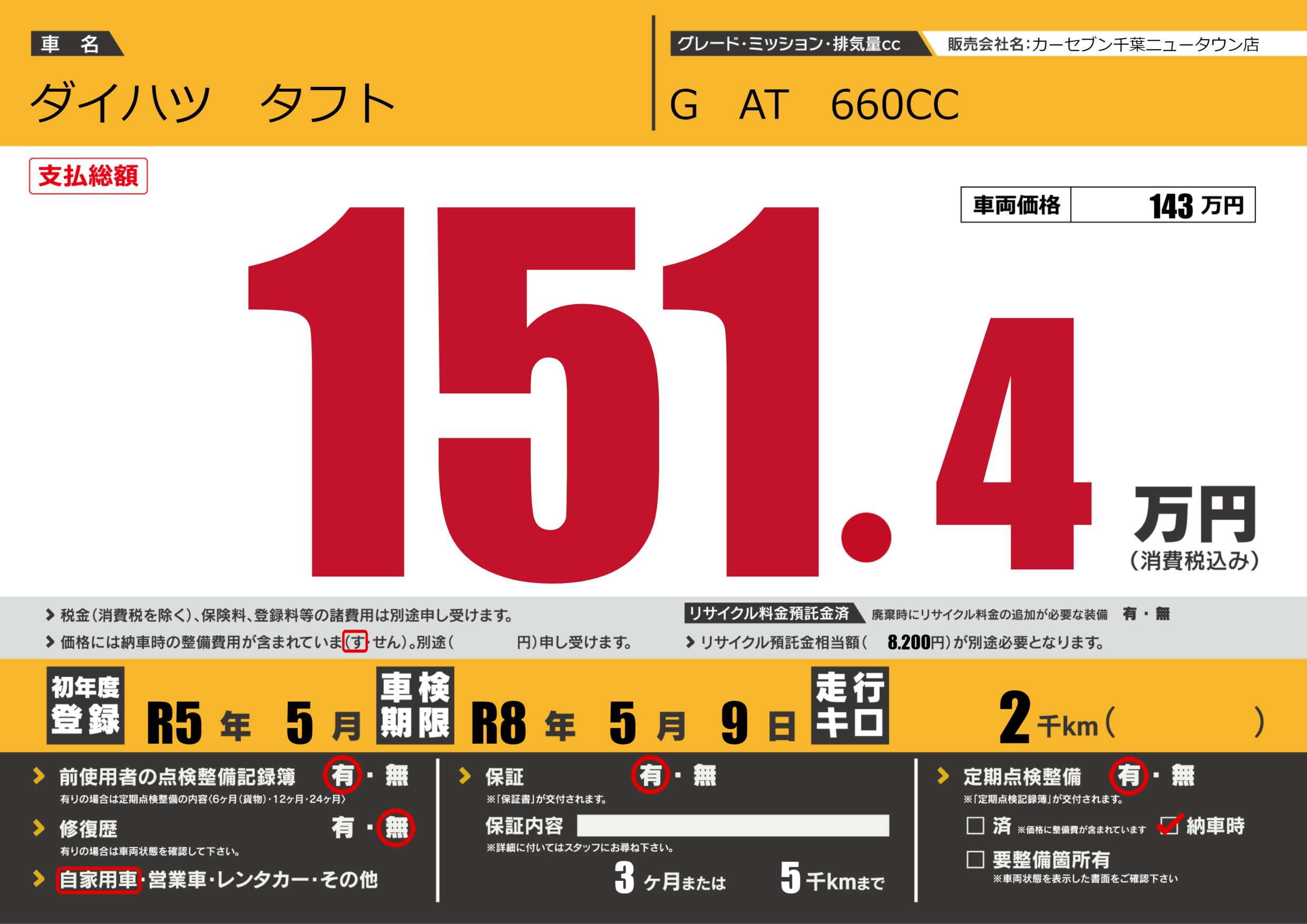 保証付き 保証内容(---) 3ヶ月または(5)千kmまで |