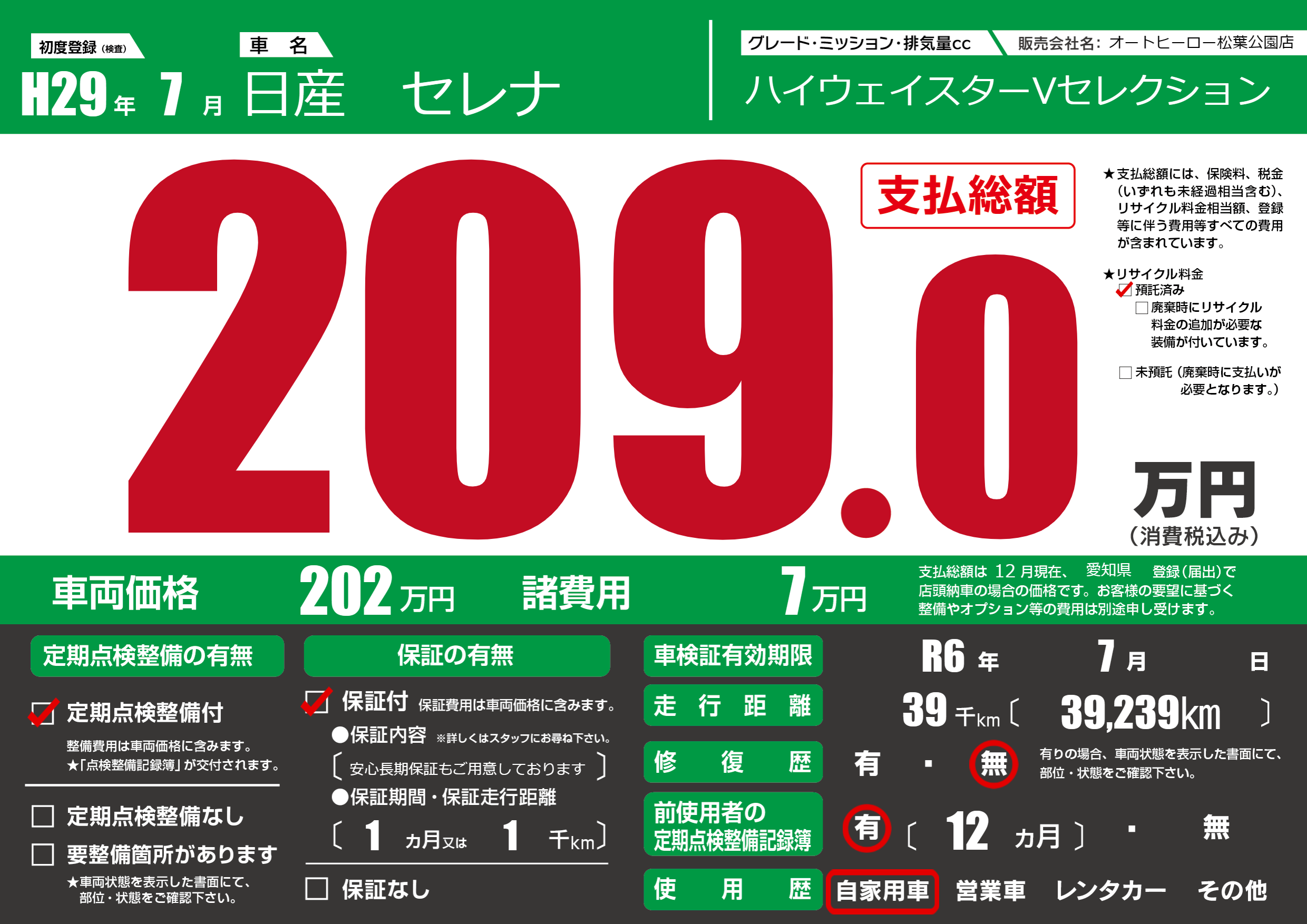 | 車検制限 | R6年 7月 - 日 | ||