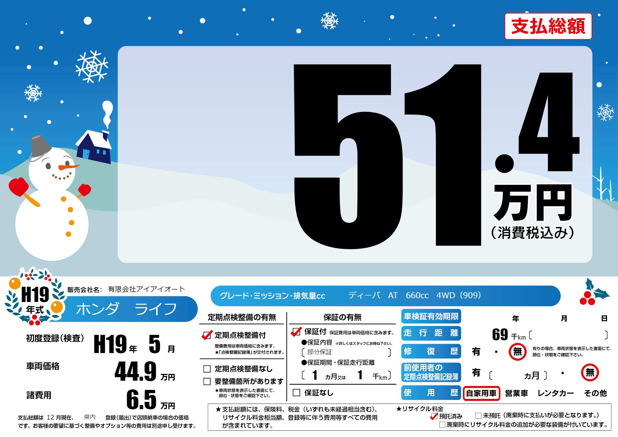 | 車名 | ホンダ ライフ | グレード ミッション 排気量 |
