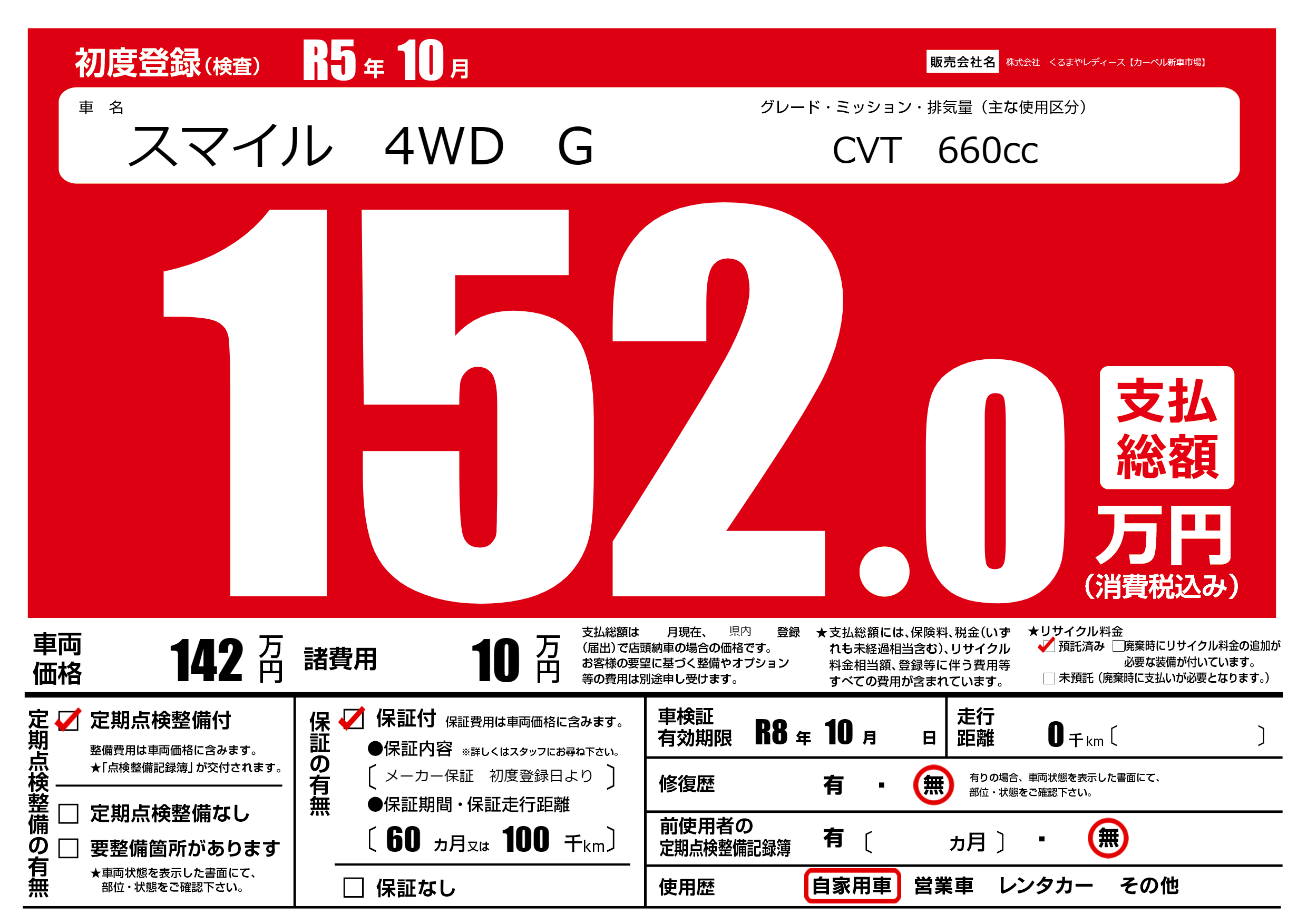 なし | 車検制限 | R8年10月---月 |