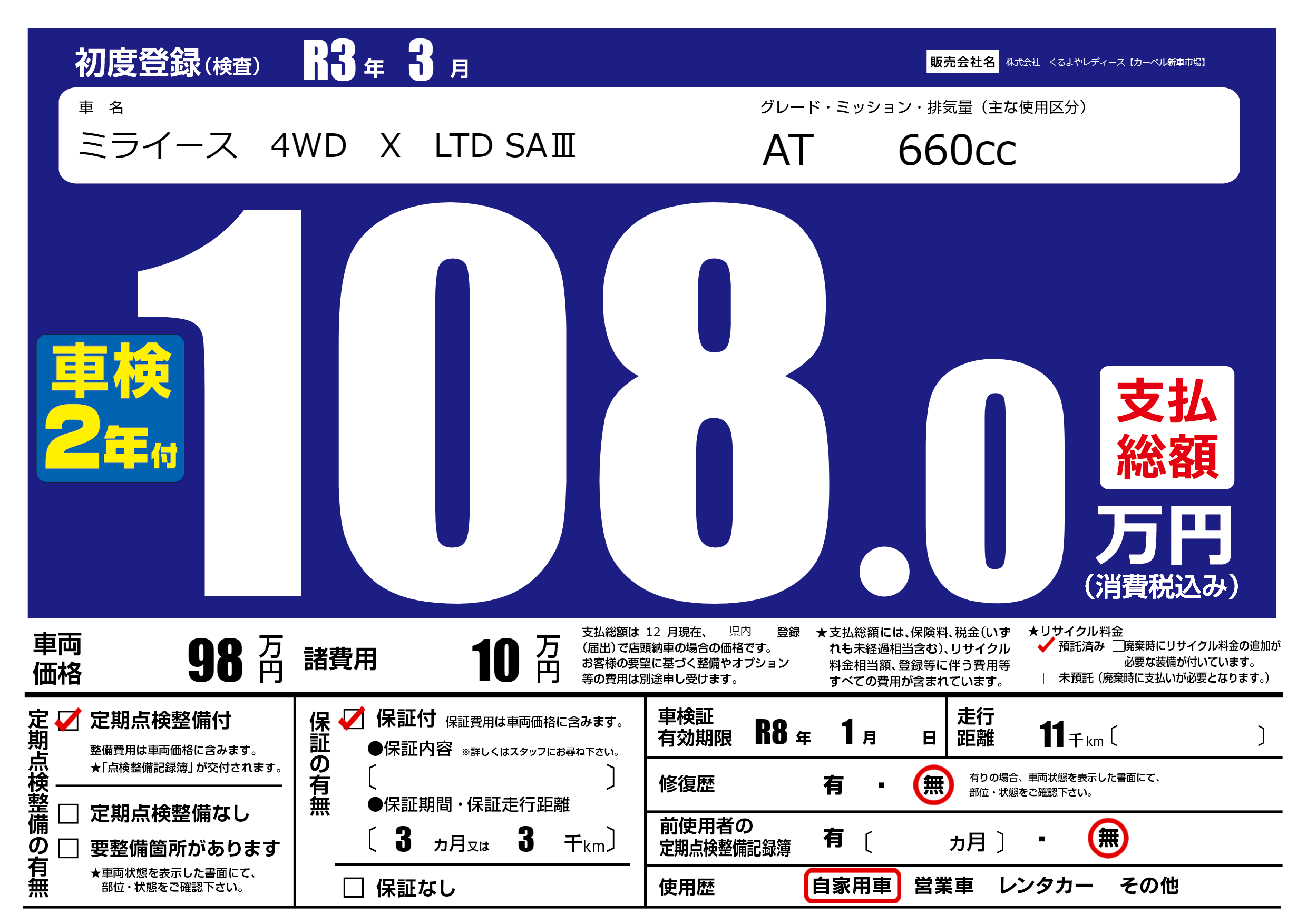 株式会社 くるまやレディース【カーベル新車市場】の展示車