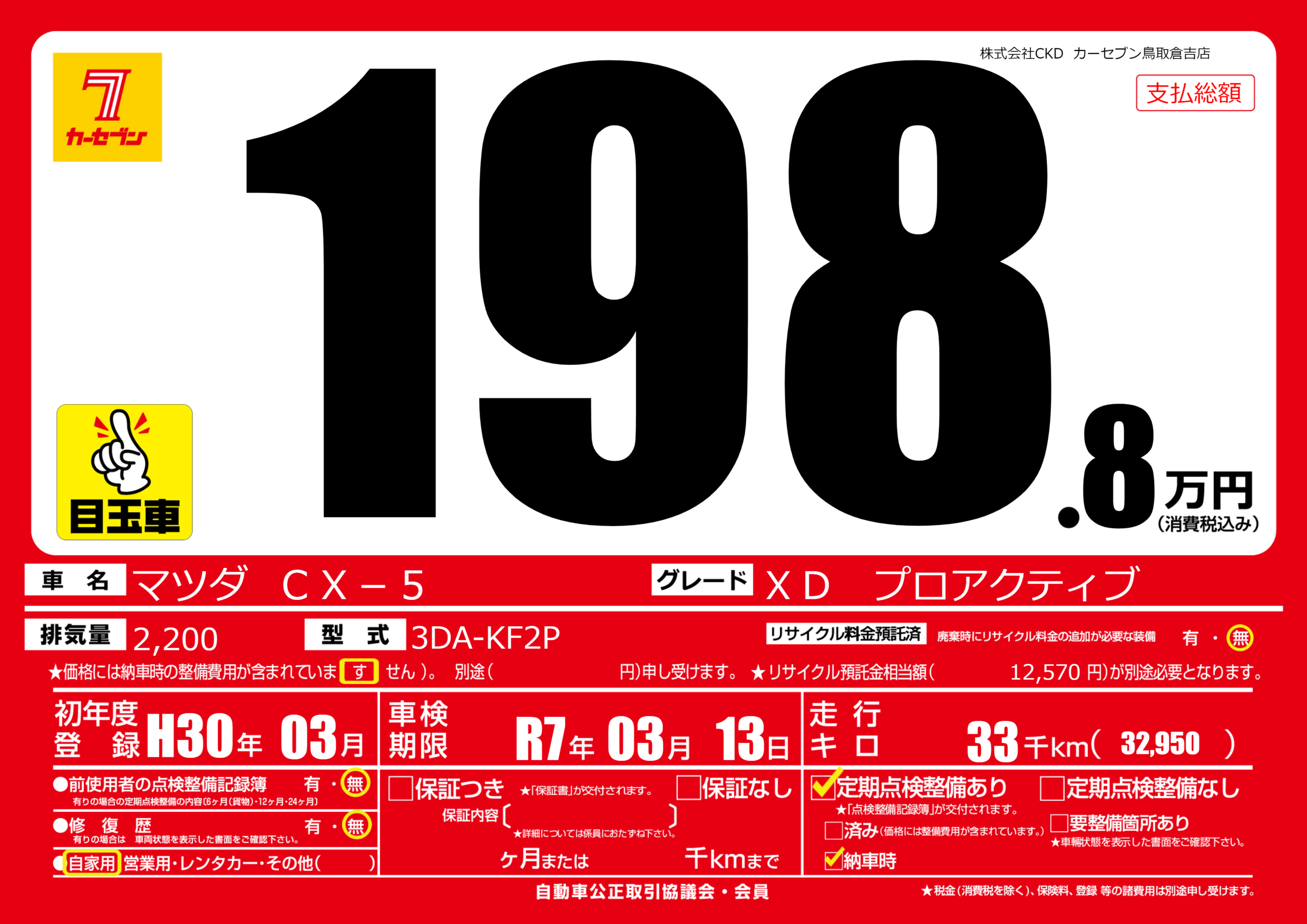 | 車検制限 | R7年 03月 13日 | ||
