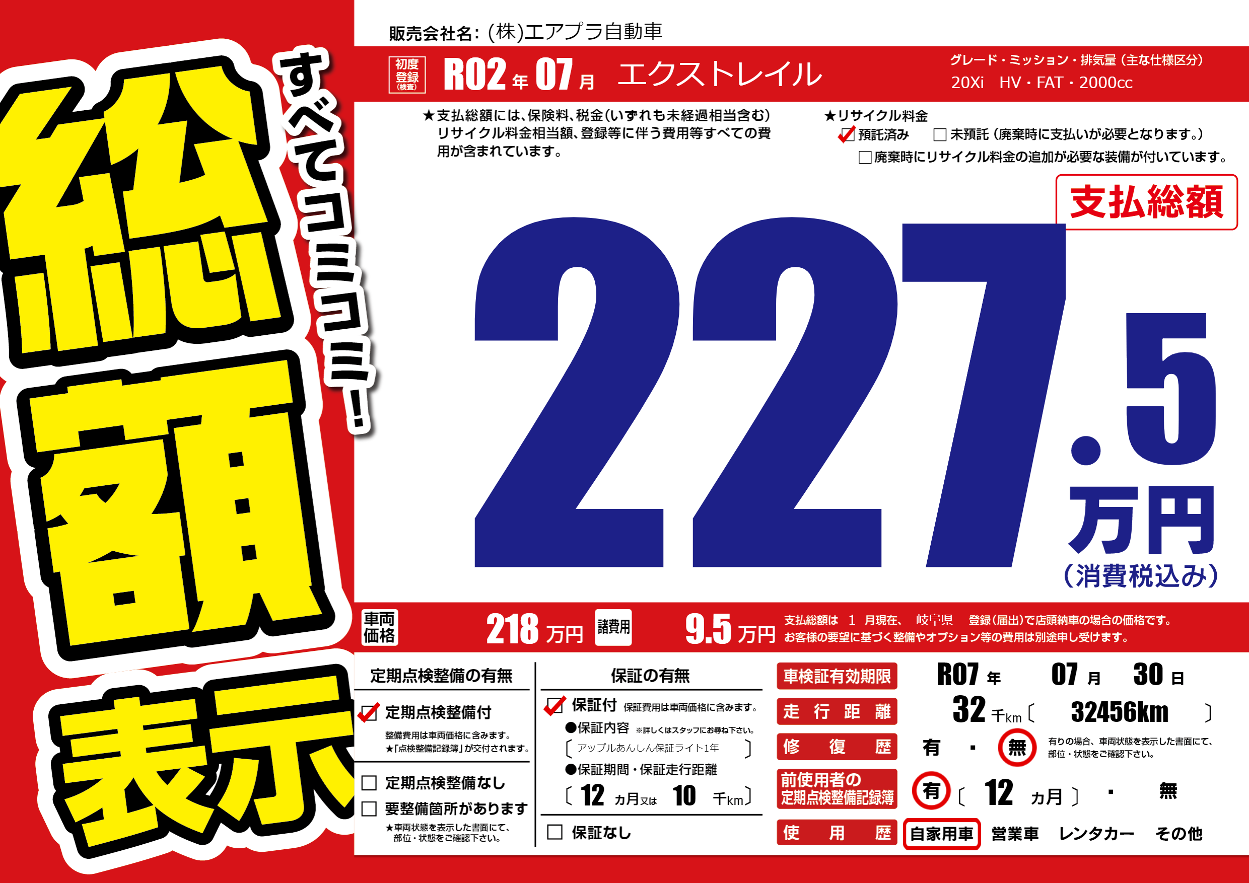 | 車名 | エクストレイル | グレード ミッション 排気量 |