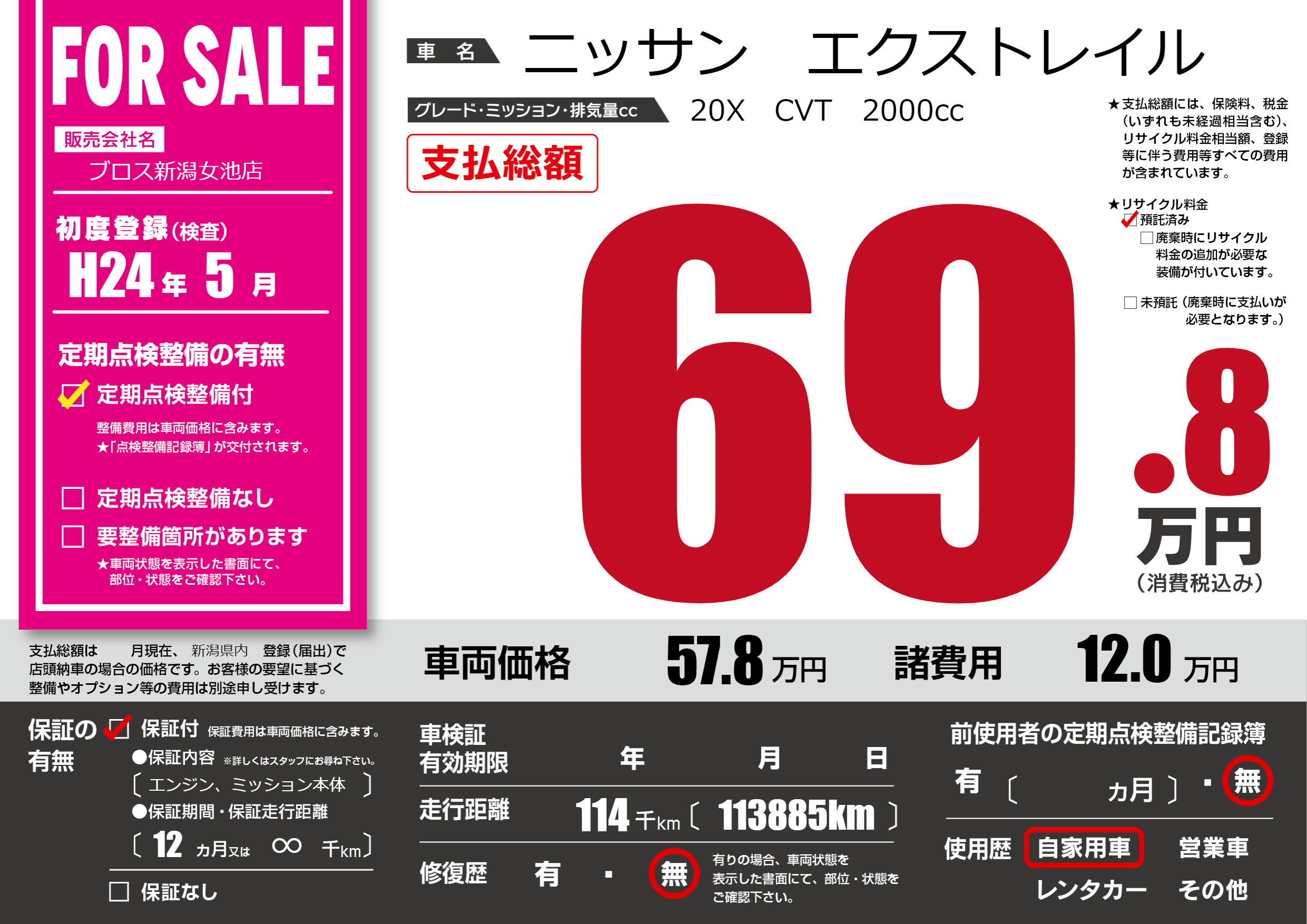 | 走行キロ | 11.4万km | 初年度登録 | H24年5月 |