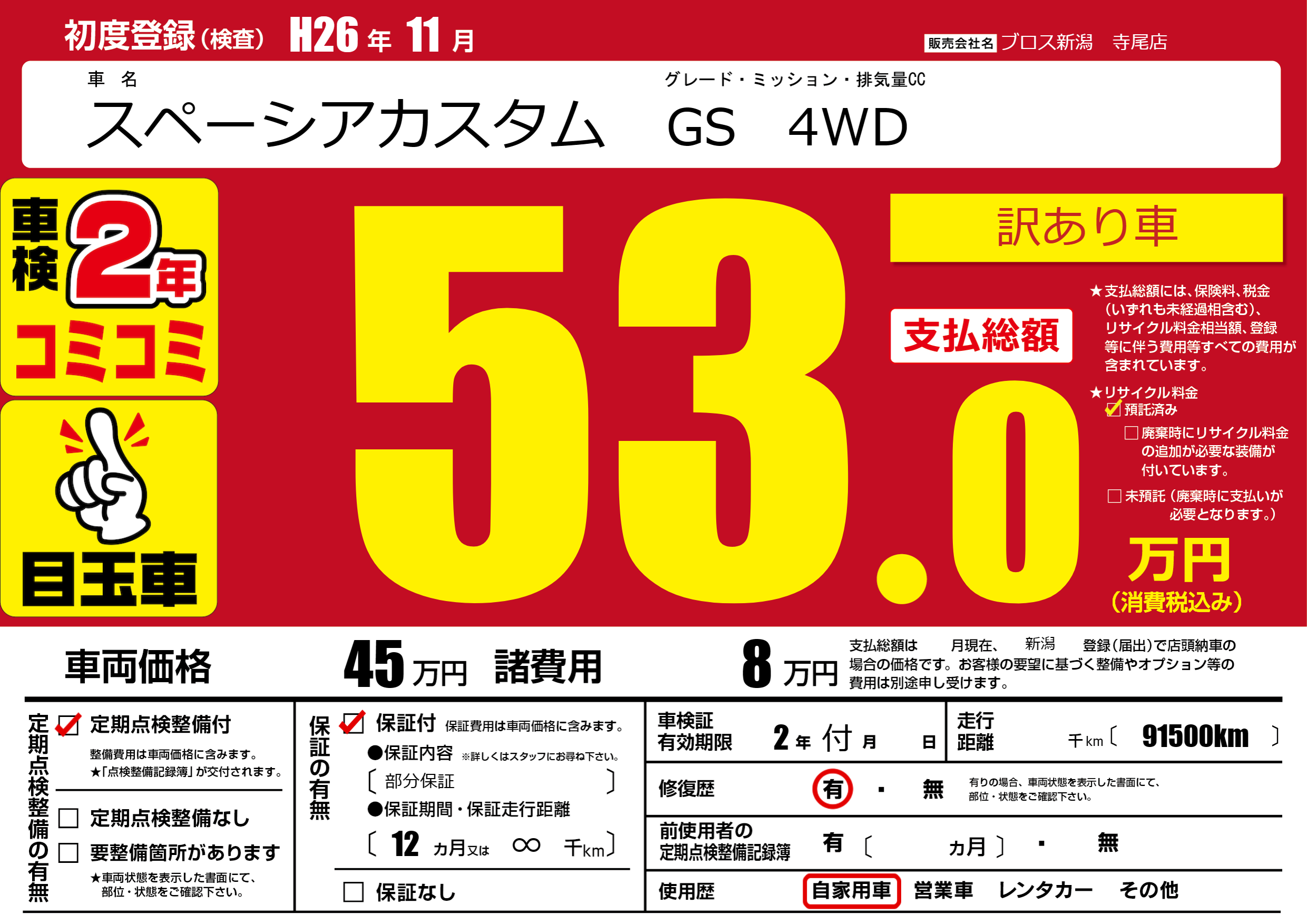| 走行キロ | - | 初年度登録 | H26年11月 |