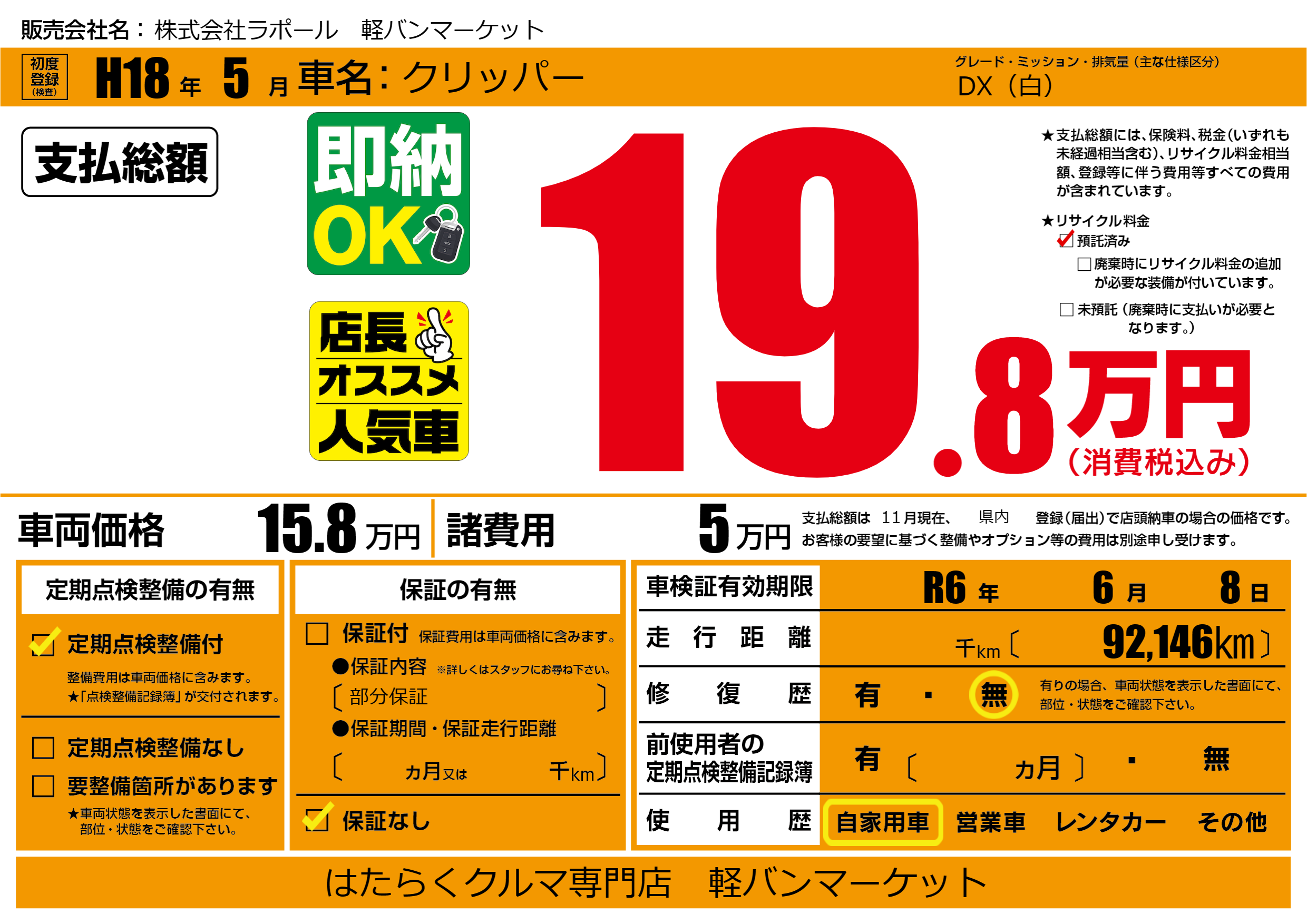 | 車名 | クリッパー | グレード ミッション 排気量 |