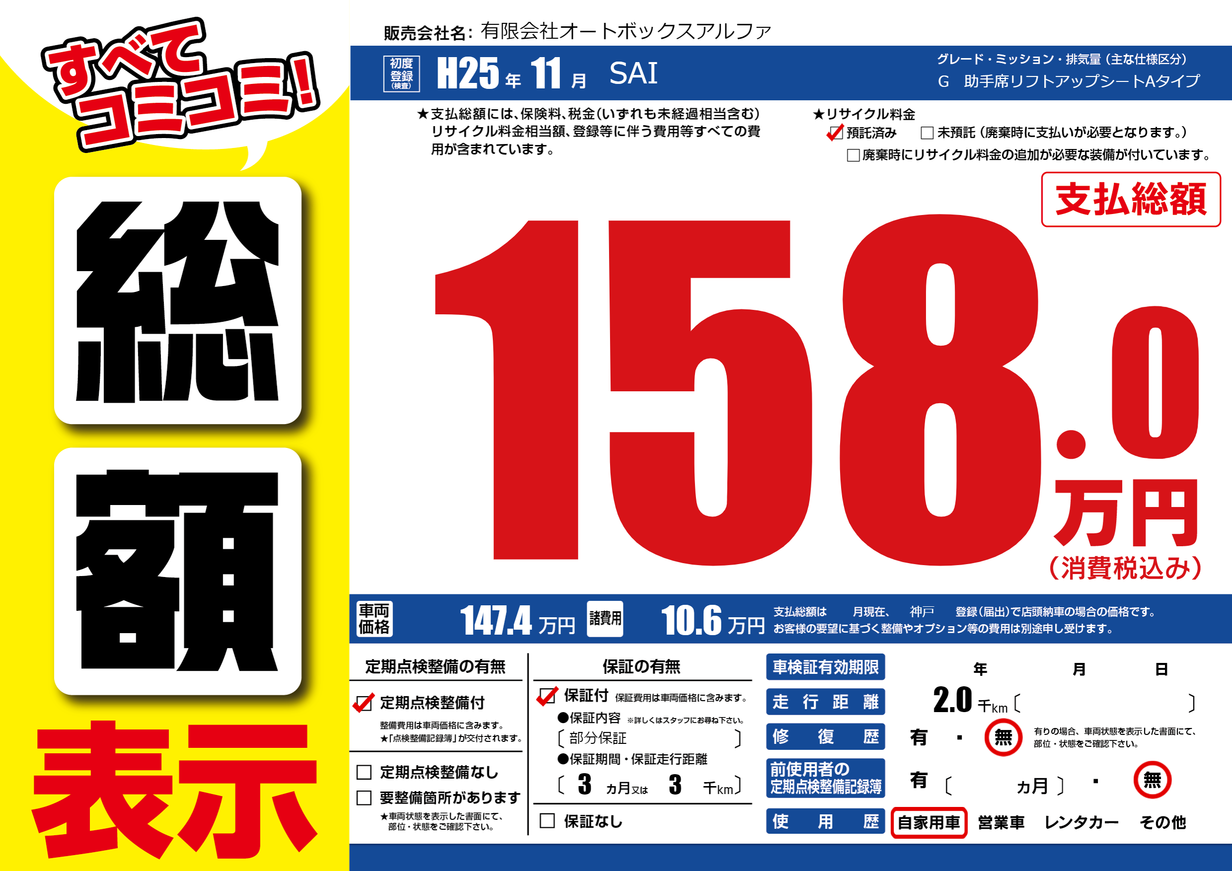 | 定期点検整備 | 定期点検整備あり | ||