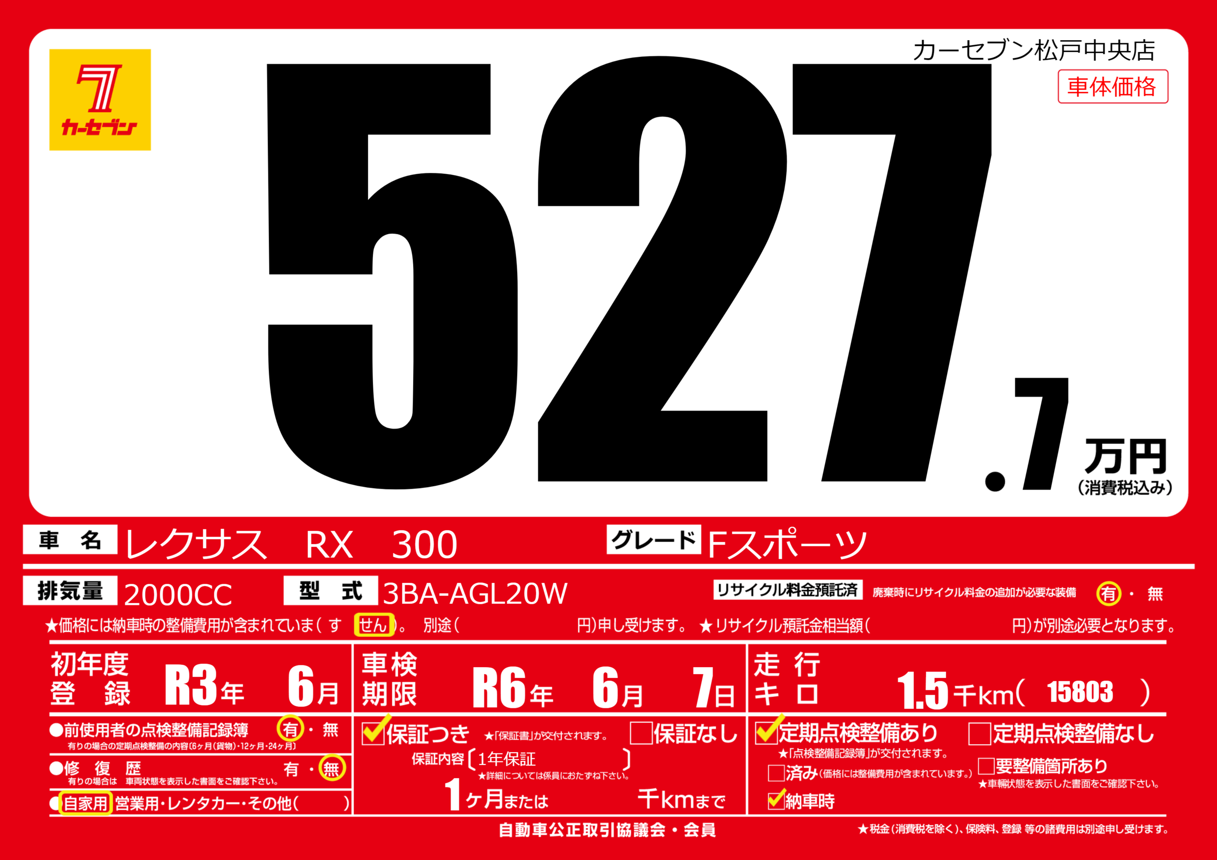 なし | 車検制限 | R6年6月7月 |