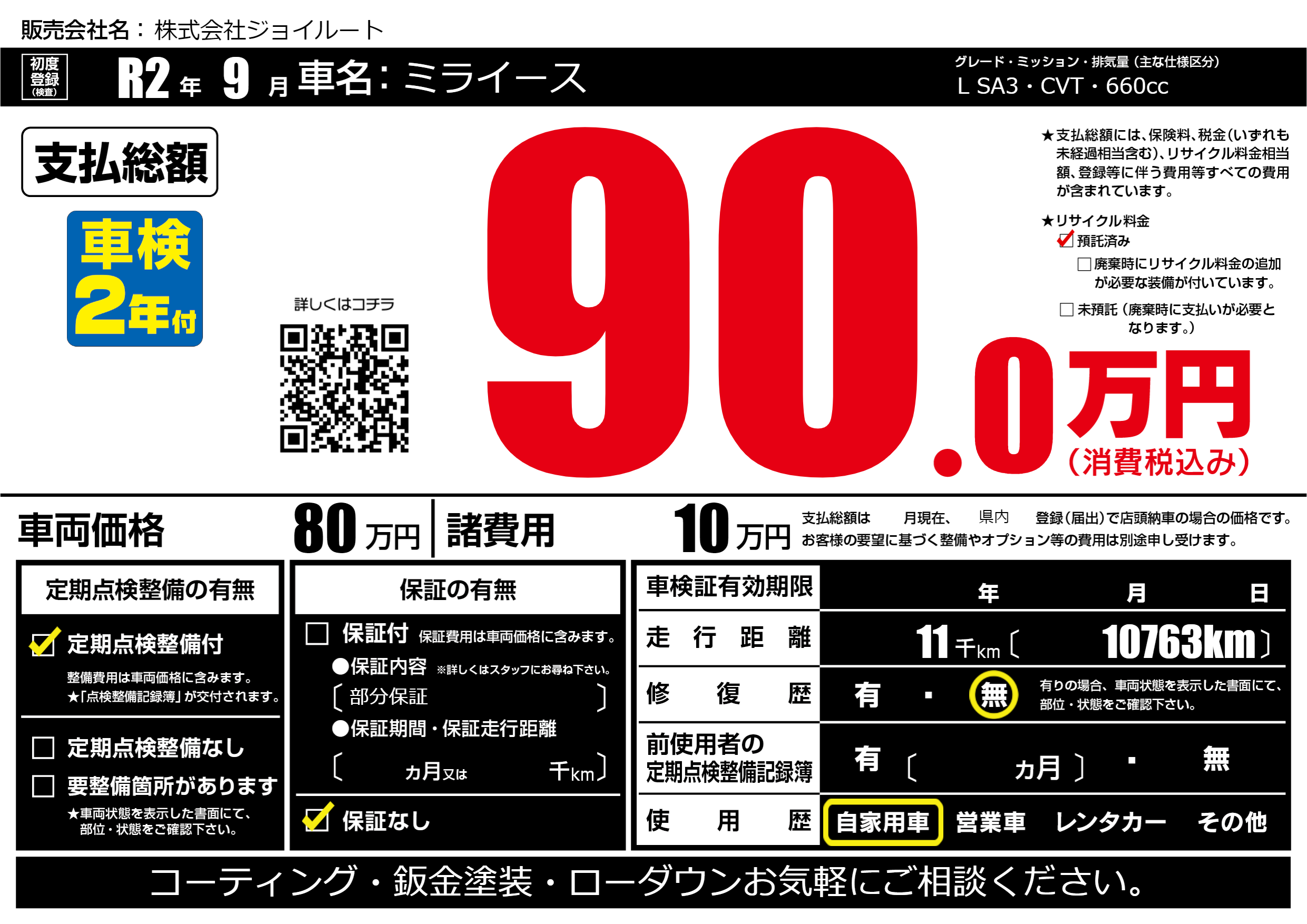 | 定期点検整備 | 定期点検整備あり | ||