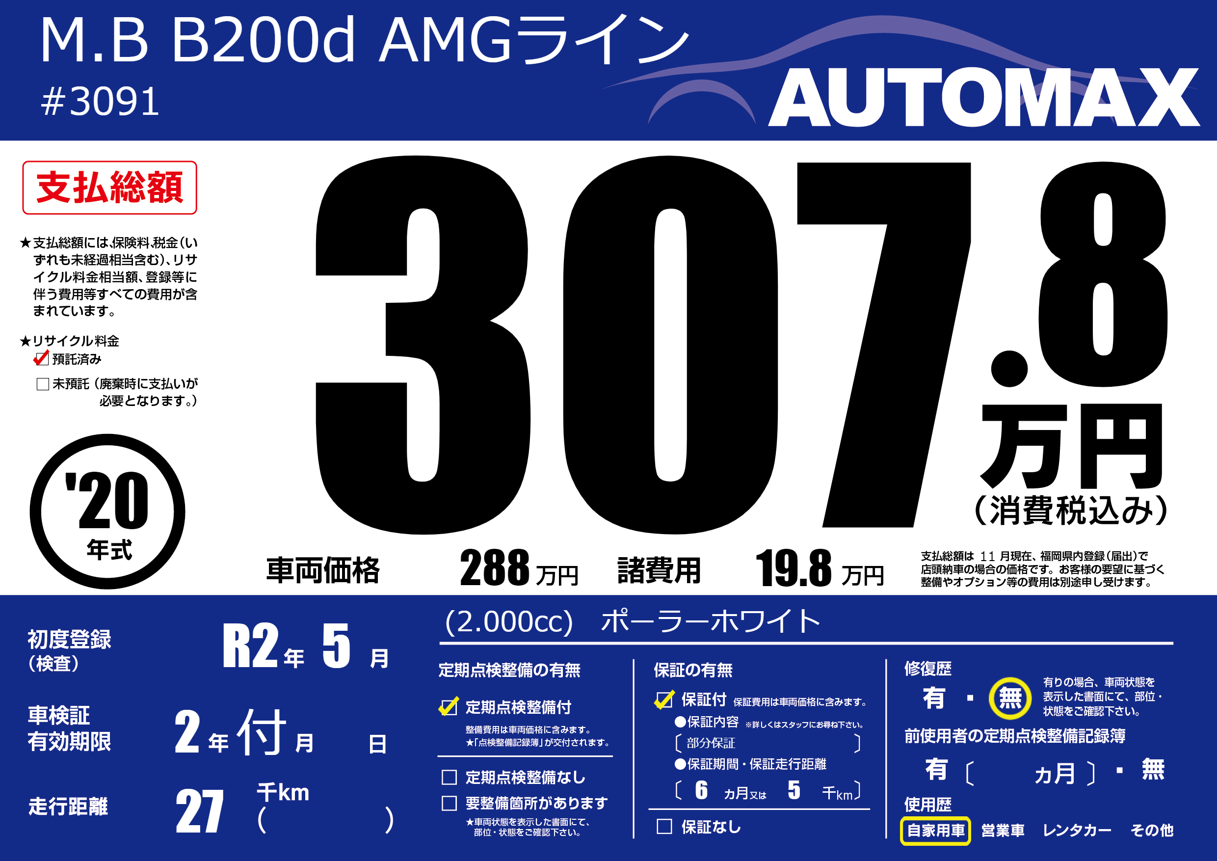 | 車検制限 | 2年 付月 - 日 | ||