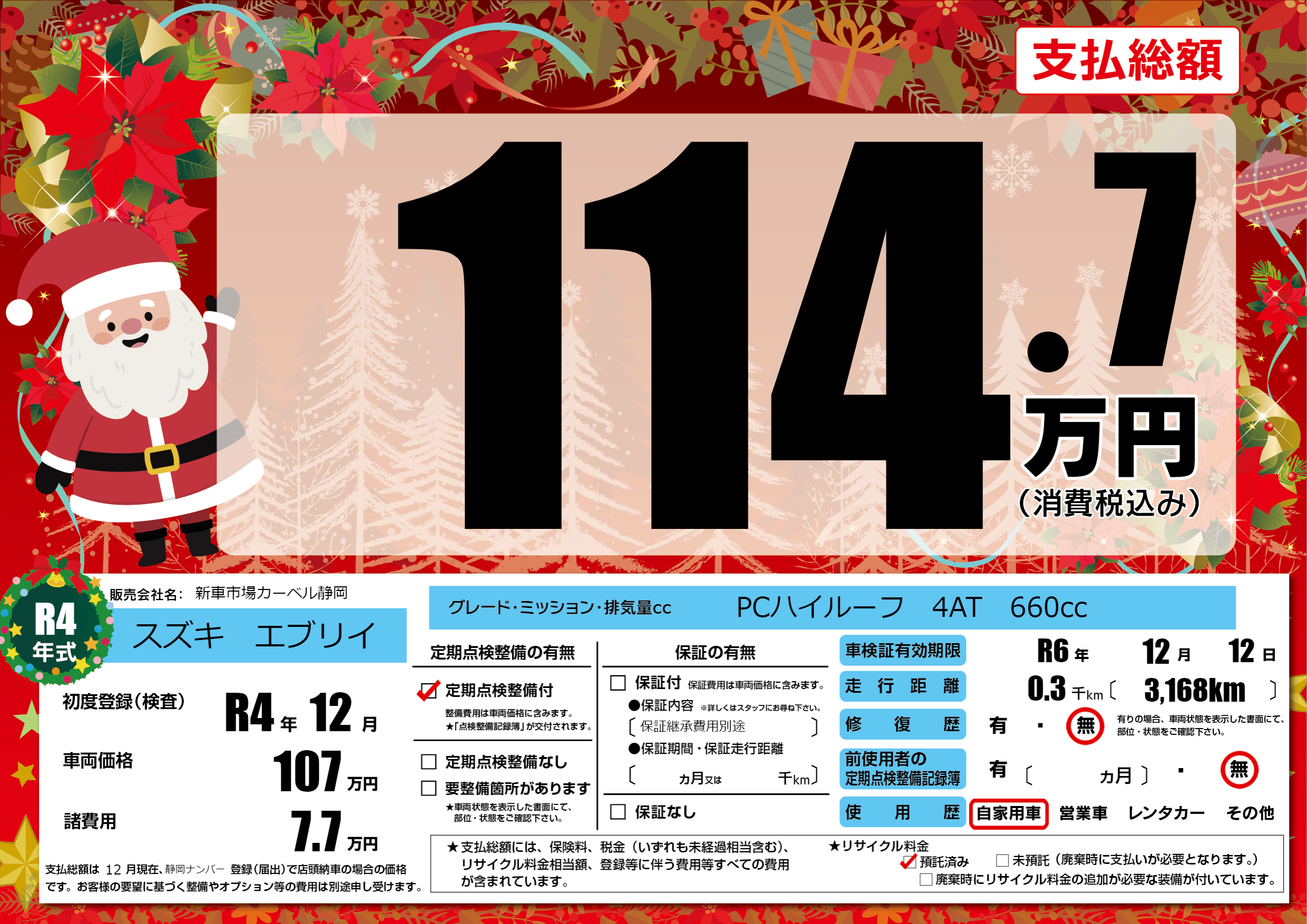 | 走行キロ | - | 初年度登録 | R4年12月 |