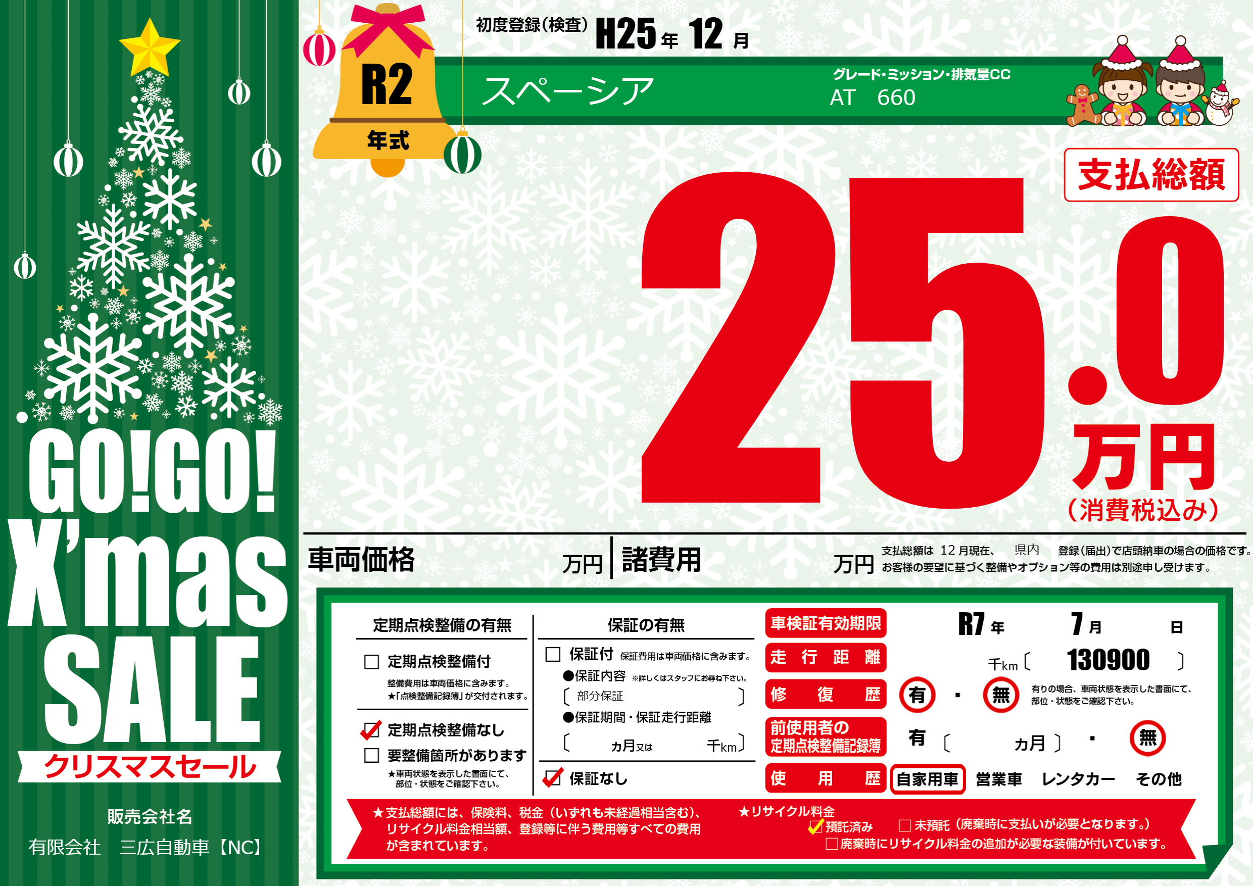 | 走行キロ | - | 初年度登録 | H25年12月 |
