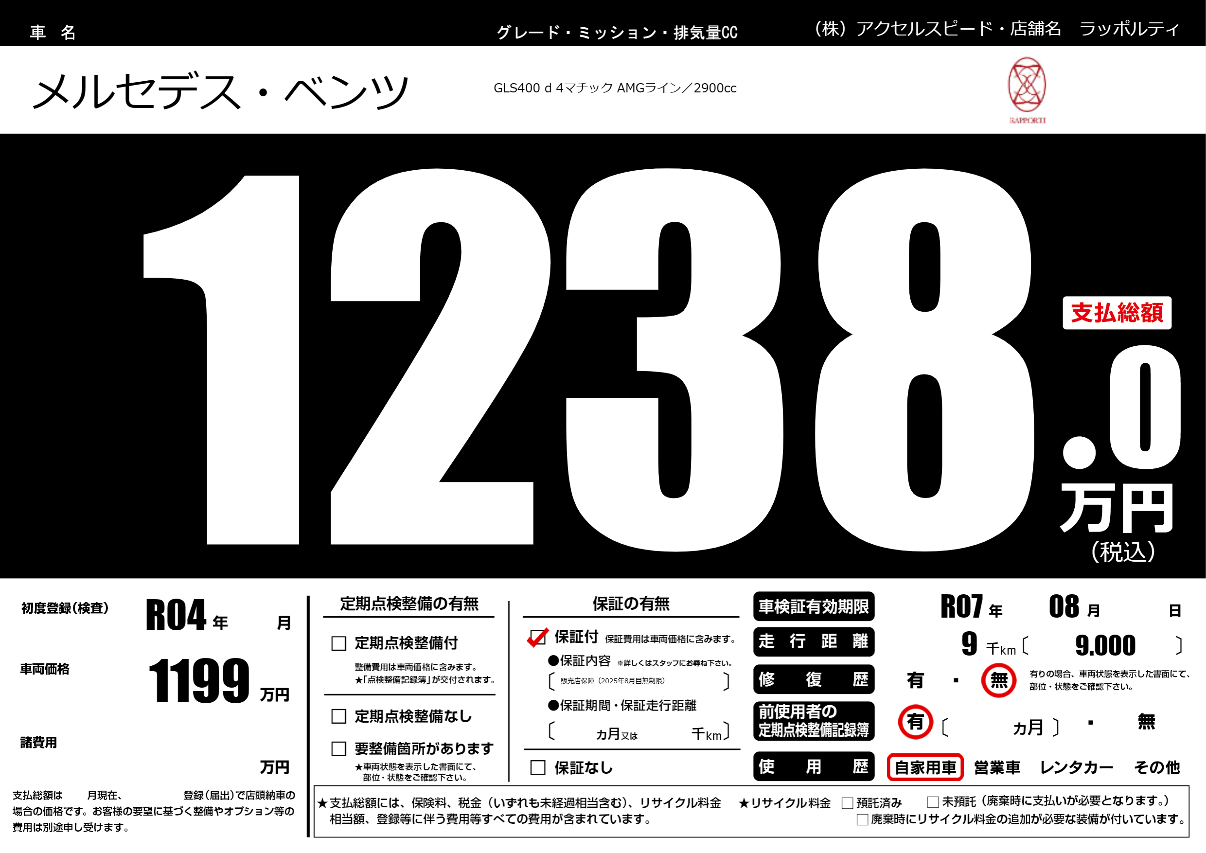 なし | 車検制限 | R07年08月---月 |