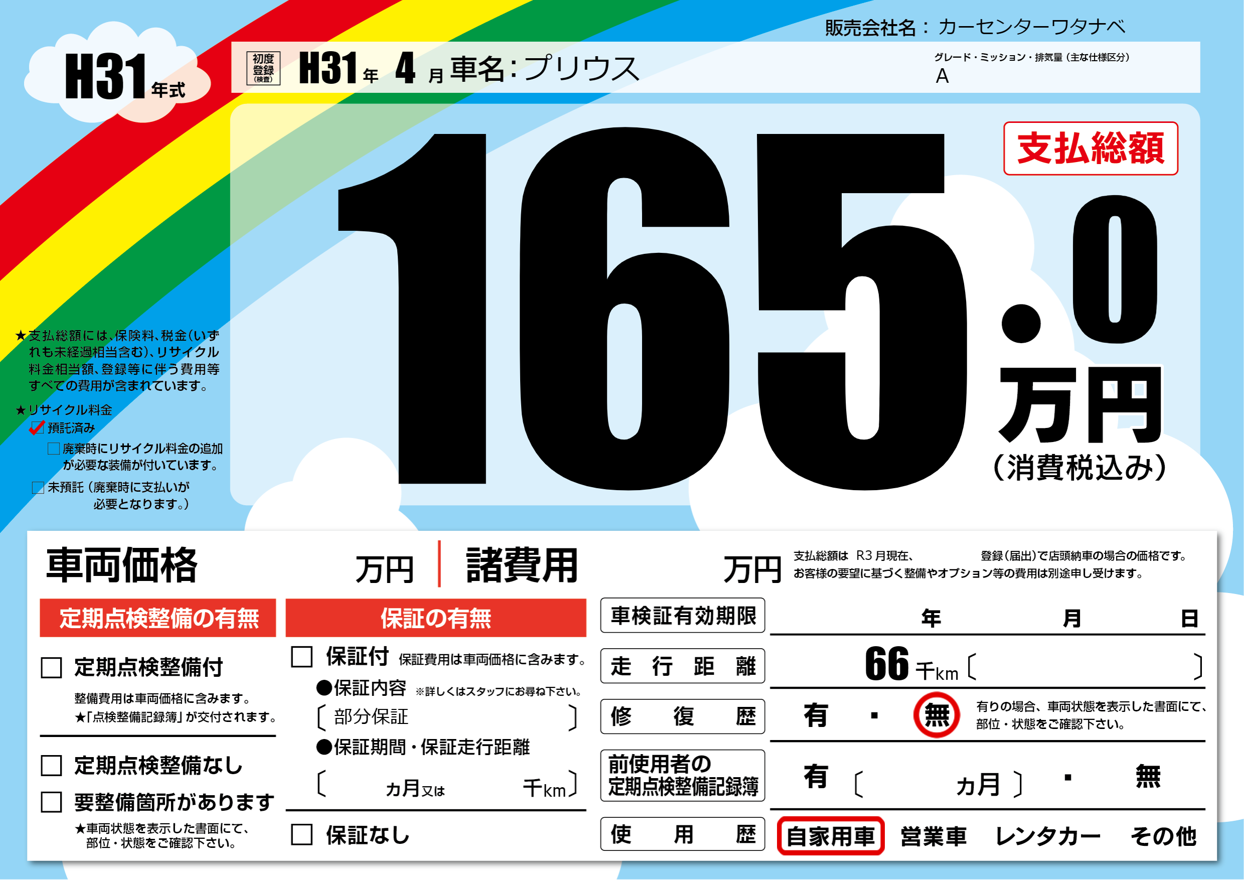 | 車名 | プリウス | グレード ミッション 排気量 |