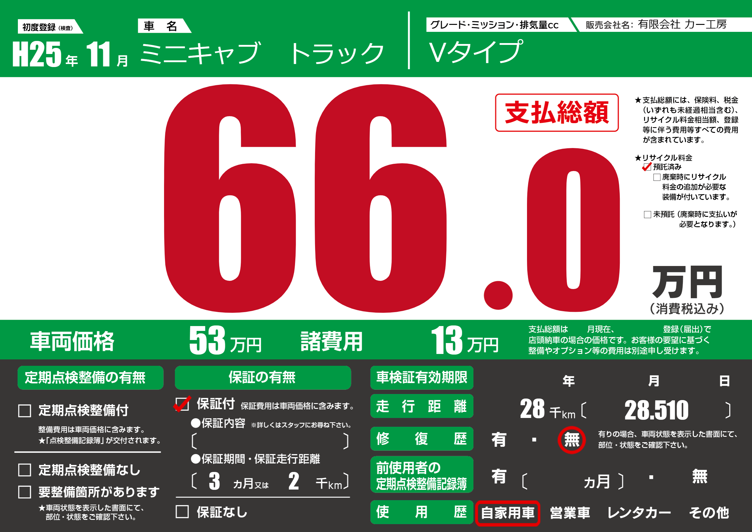 | 走行キロ | 2.8万km | 初年度登録 | H25年11月 |