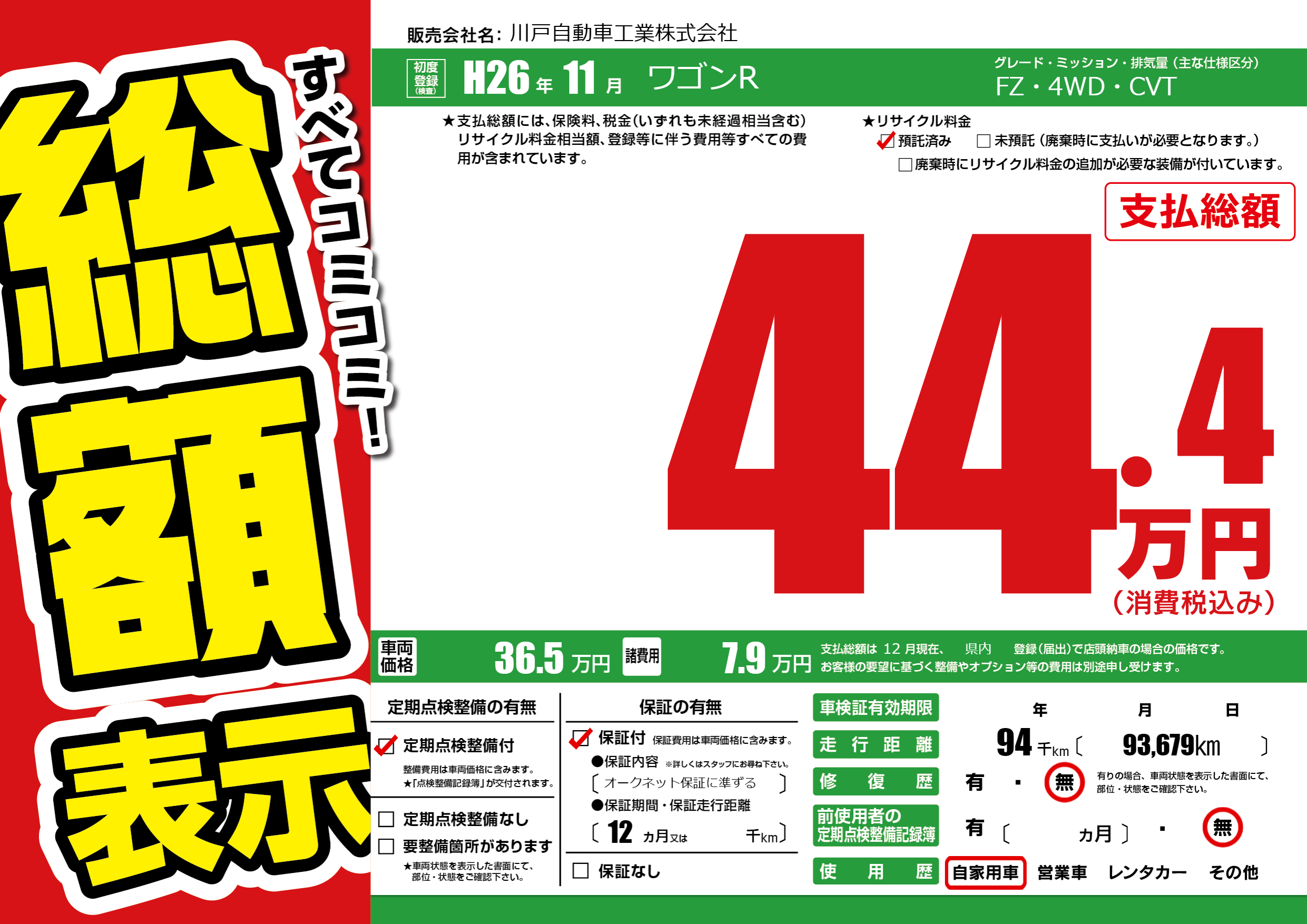 | 定期点検整備 | 定期点検整備あり | ||