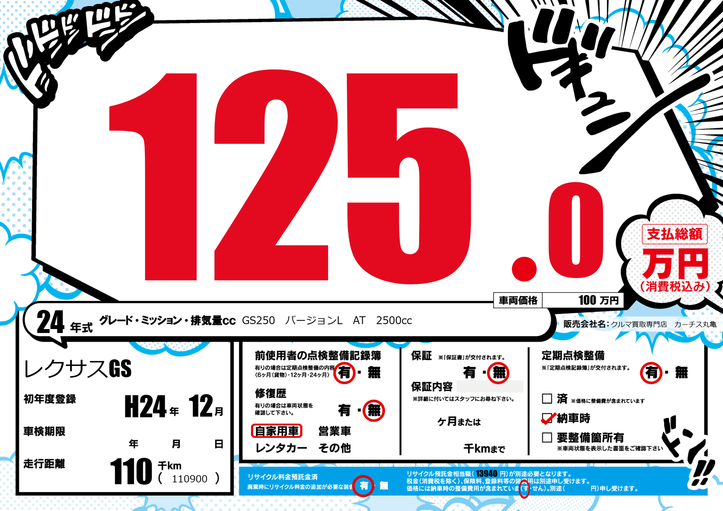 | 車名 | レクサスGS | グレード ミッション 排気量 |