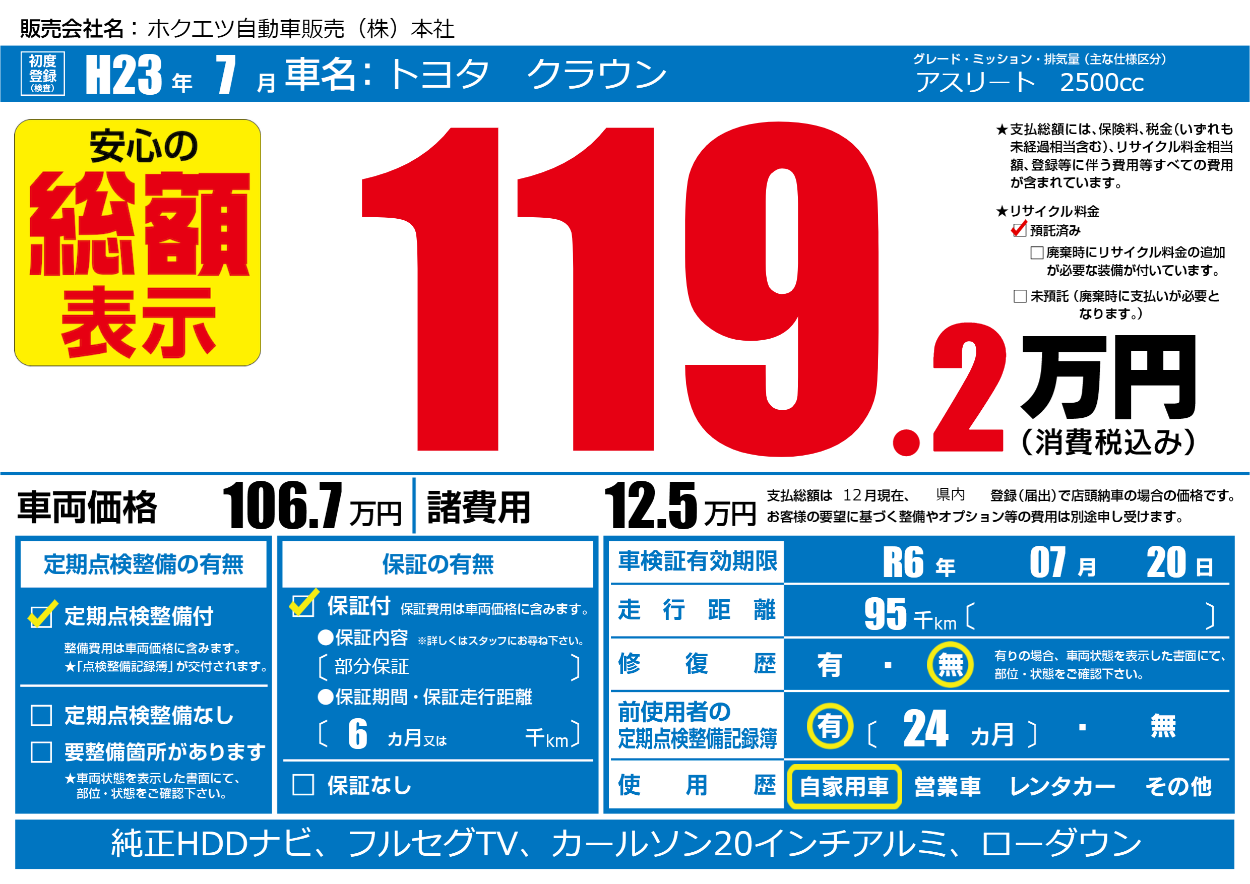 | 車名 | トヨタ クラウン | グレード ミッション 排気量 |