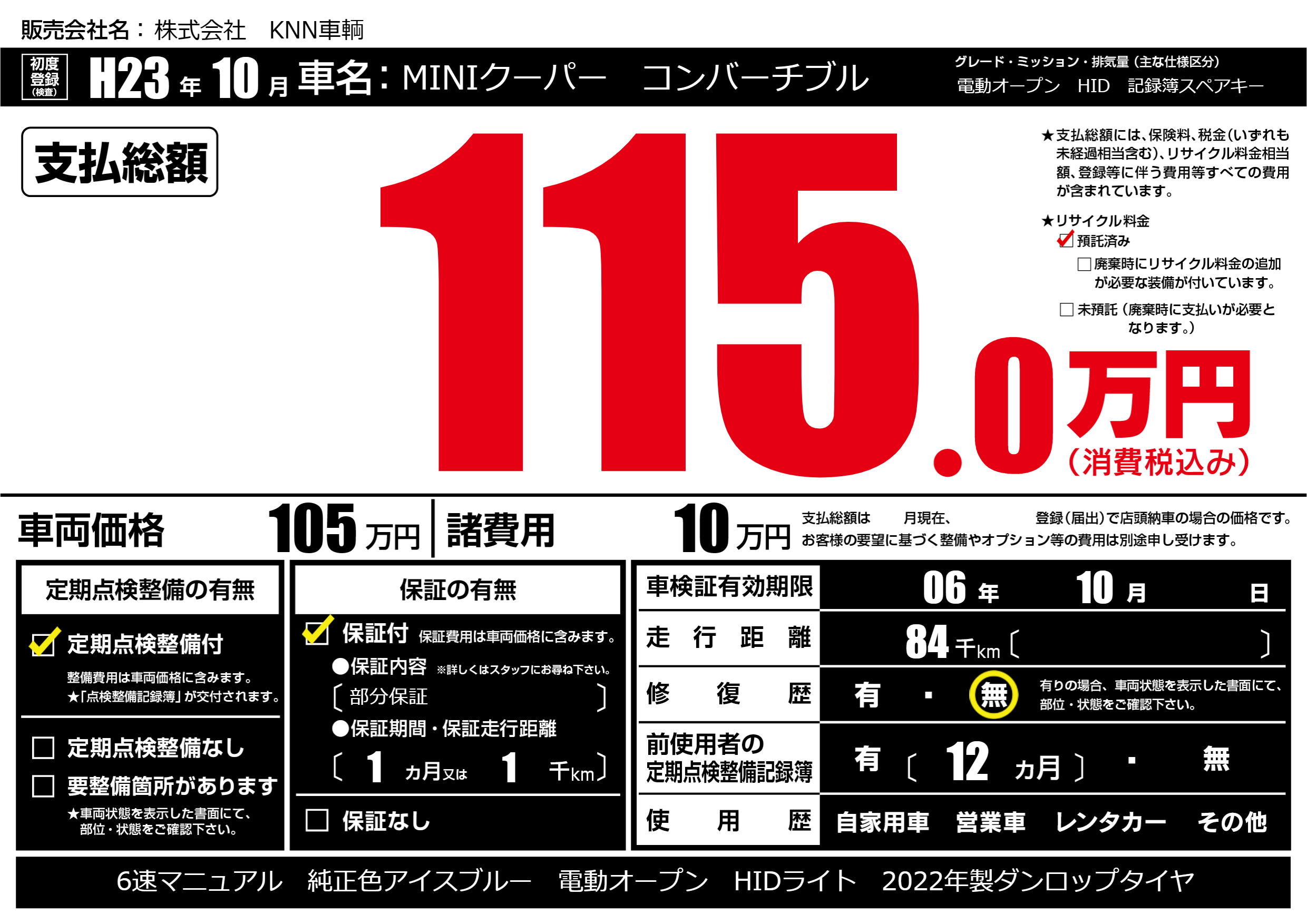 なし | 車検制限 | 06年10月---月 |