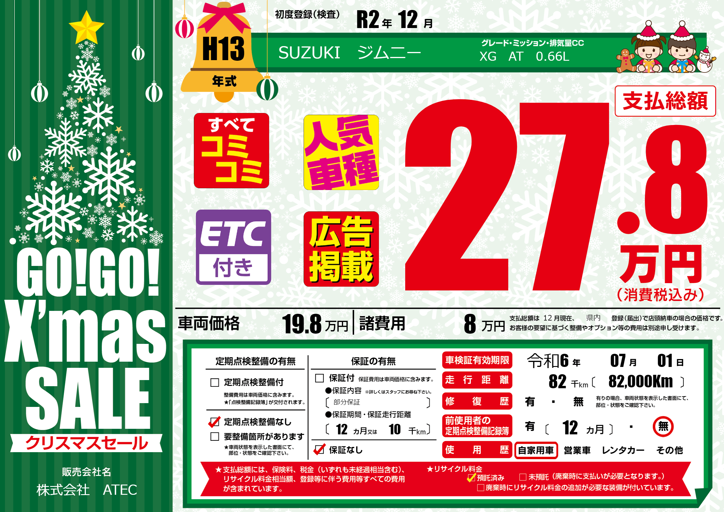 | 車名 | SUZUKI ジムニー | グレード ミッション 排気量 |