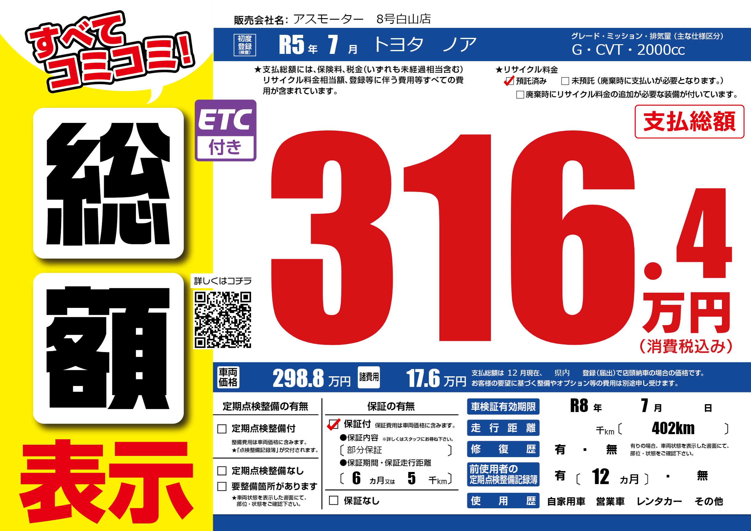 | 車検制限 | R8年 7月 - 日 | ||