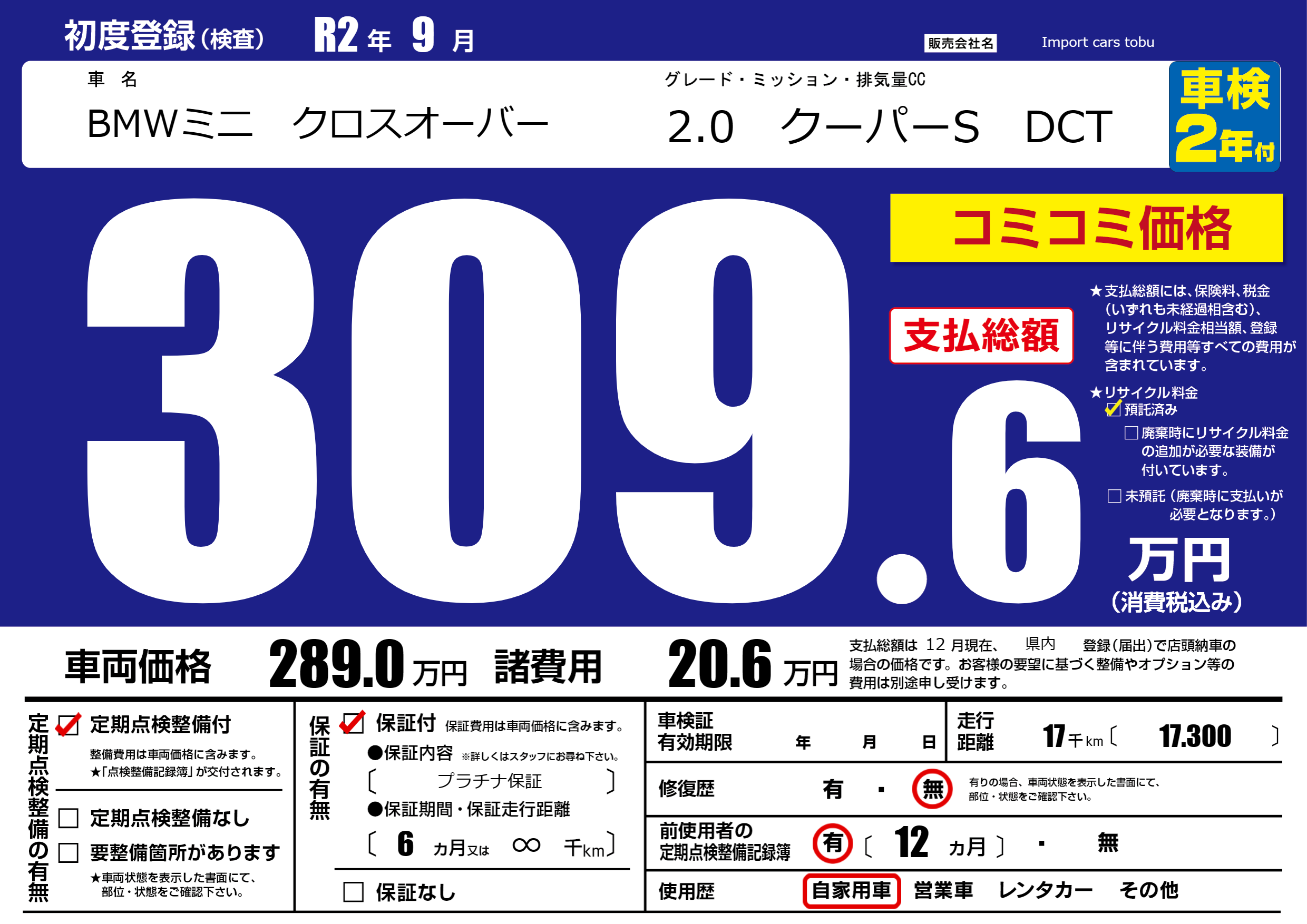 保証付き 保証内容( プラチナ保証) 6ヶ月または(∞)千kmまで |