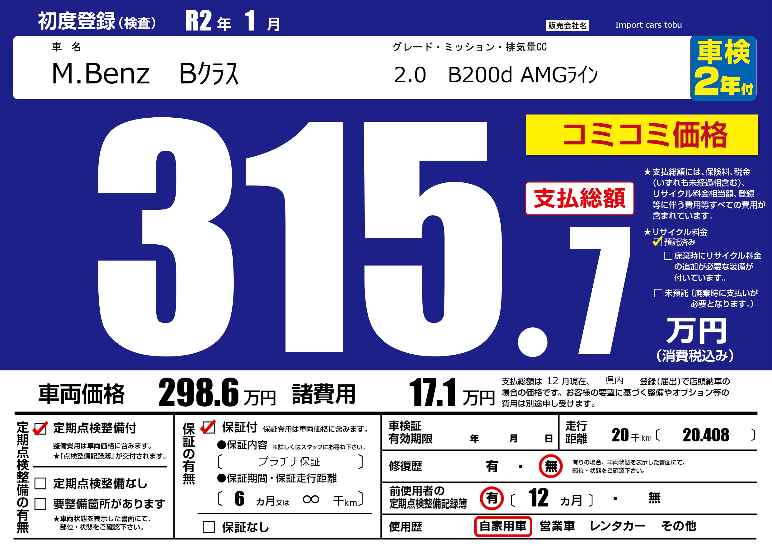 | 定期点検整備 | 定期点検整備あり | ||