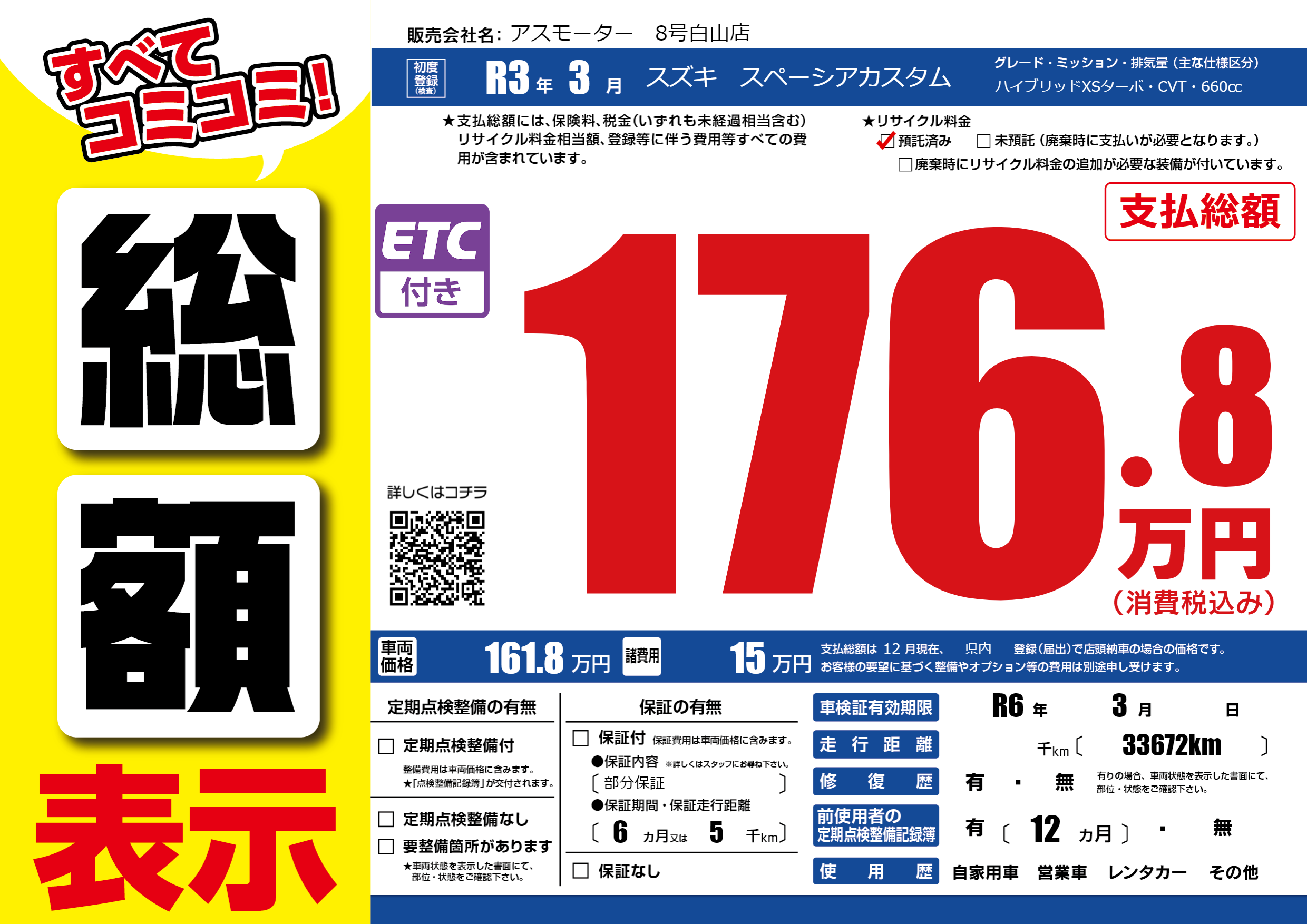 | 車検制限 | R6年 3月 - 日 | ||