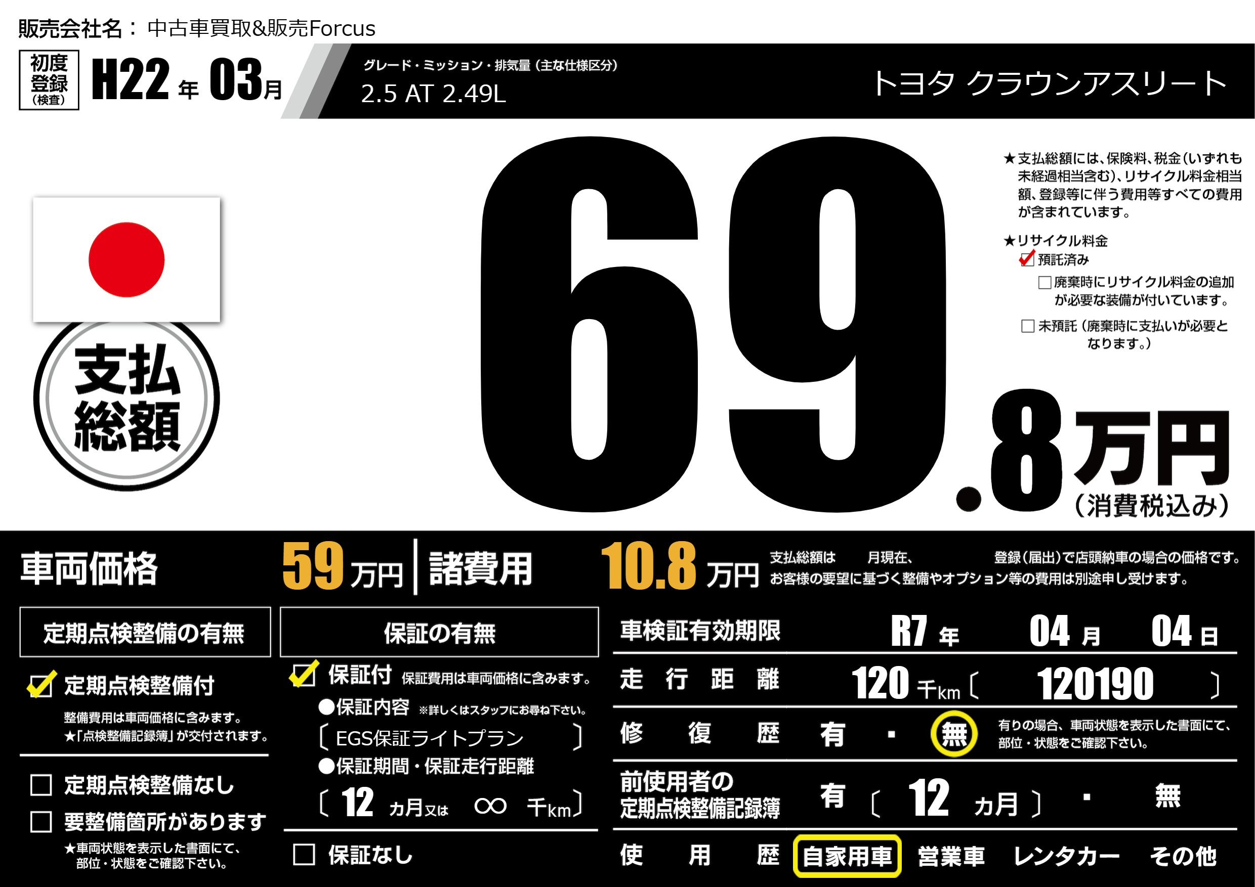 | 車検制限 | R7年 04月 04日 | ||