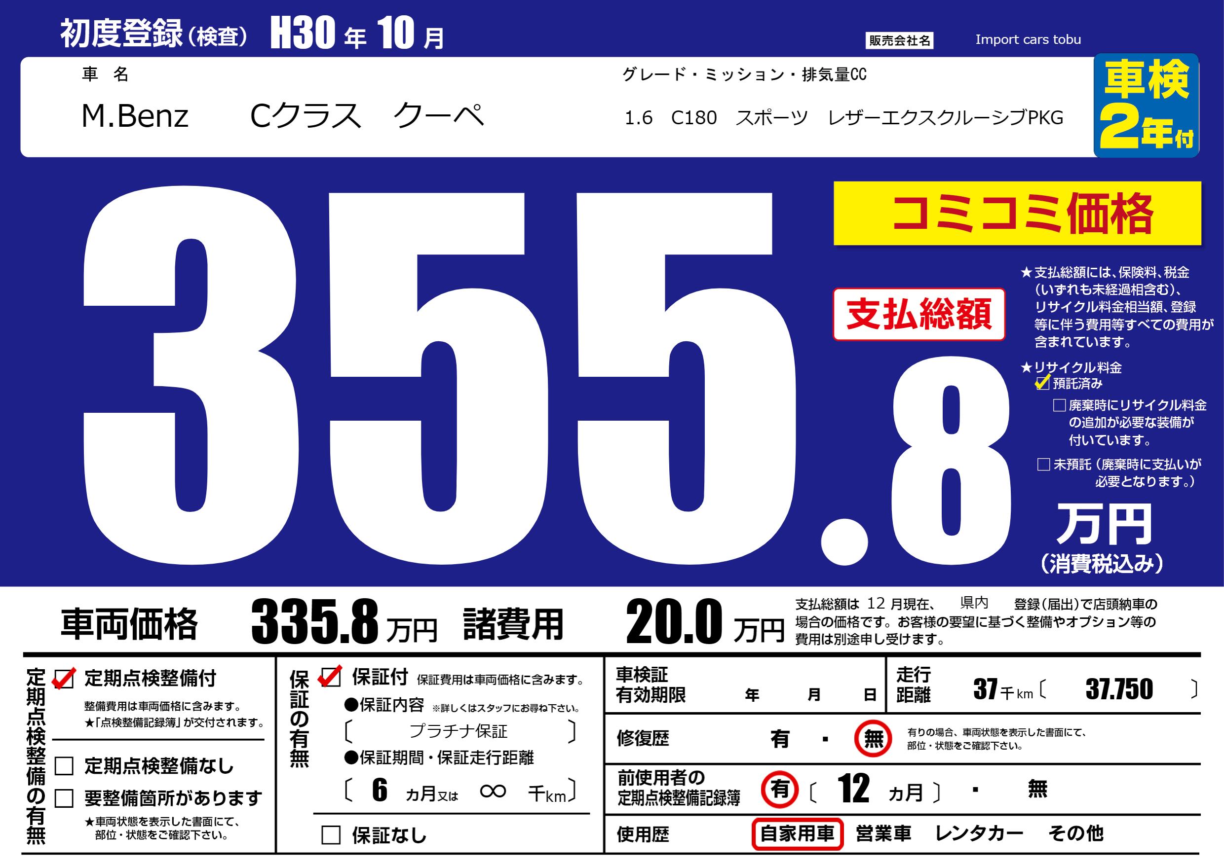 保証付き 保証内容( プラチナ保証) 6ヶ月または(∞)千kmまで |