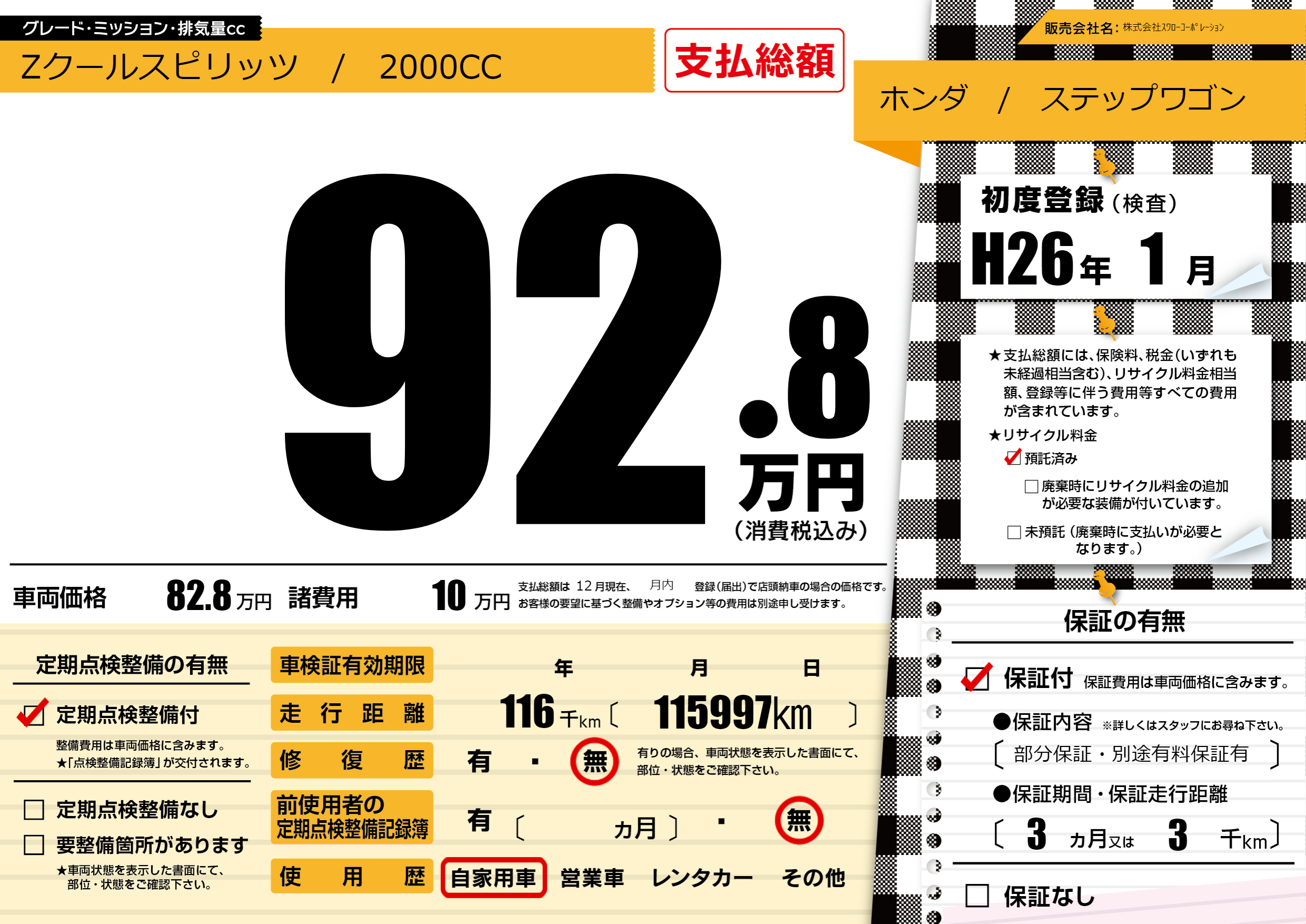 | 走行キロ | 11.6万km | 初年度登録 | H26年1月 |