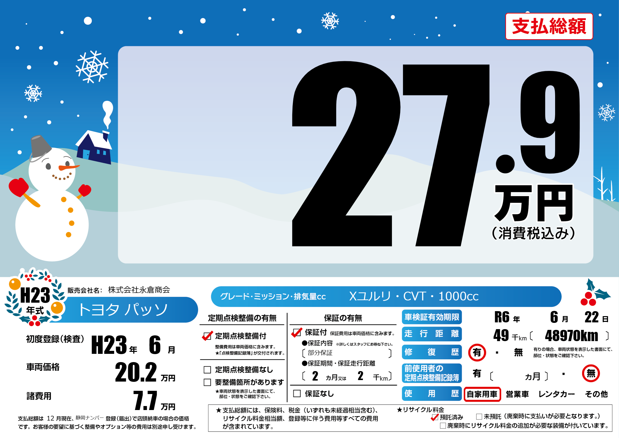 | 走行キロ | 4.9万km | 初年度登録 | H23年6月 |