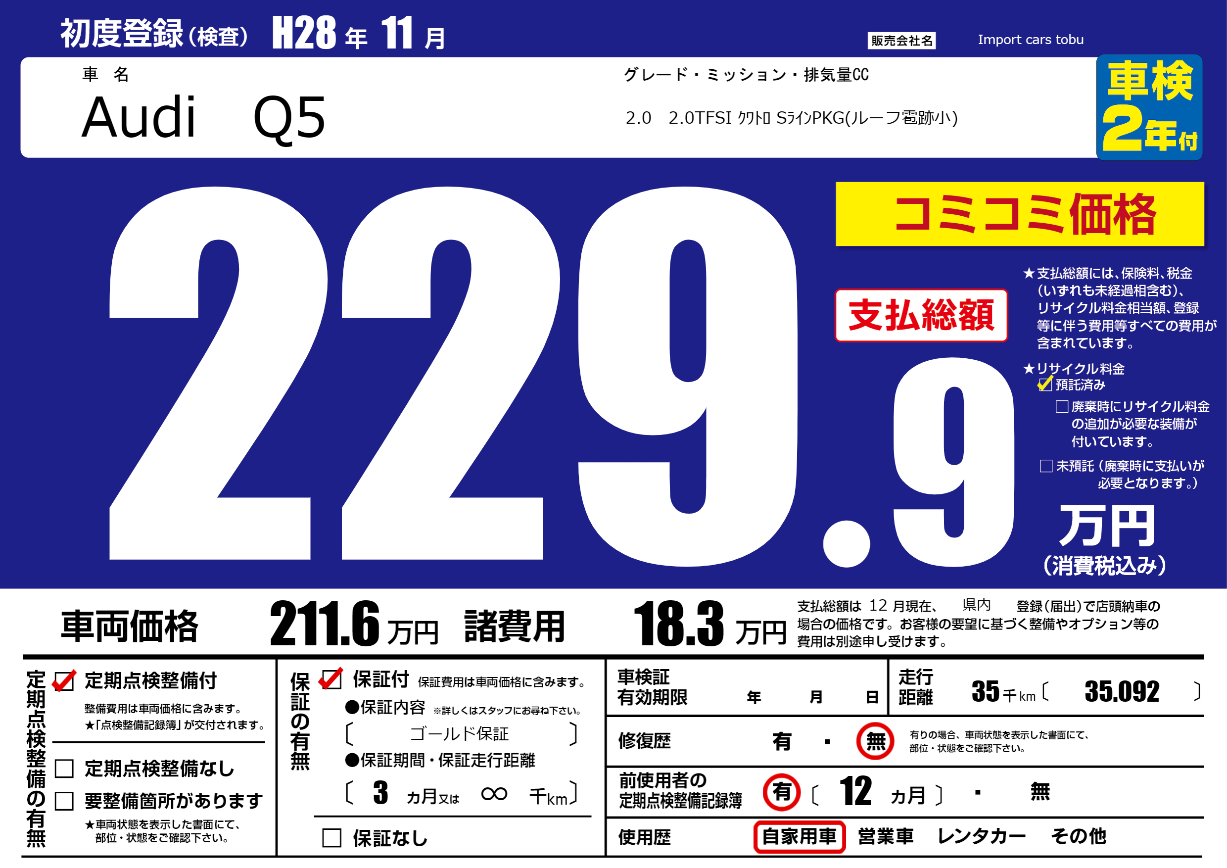 | 走行キロ | 3.5万km | ||