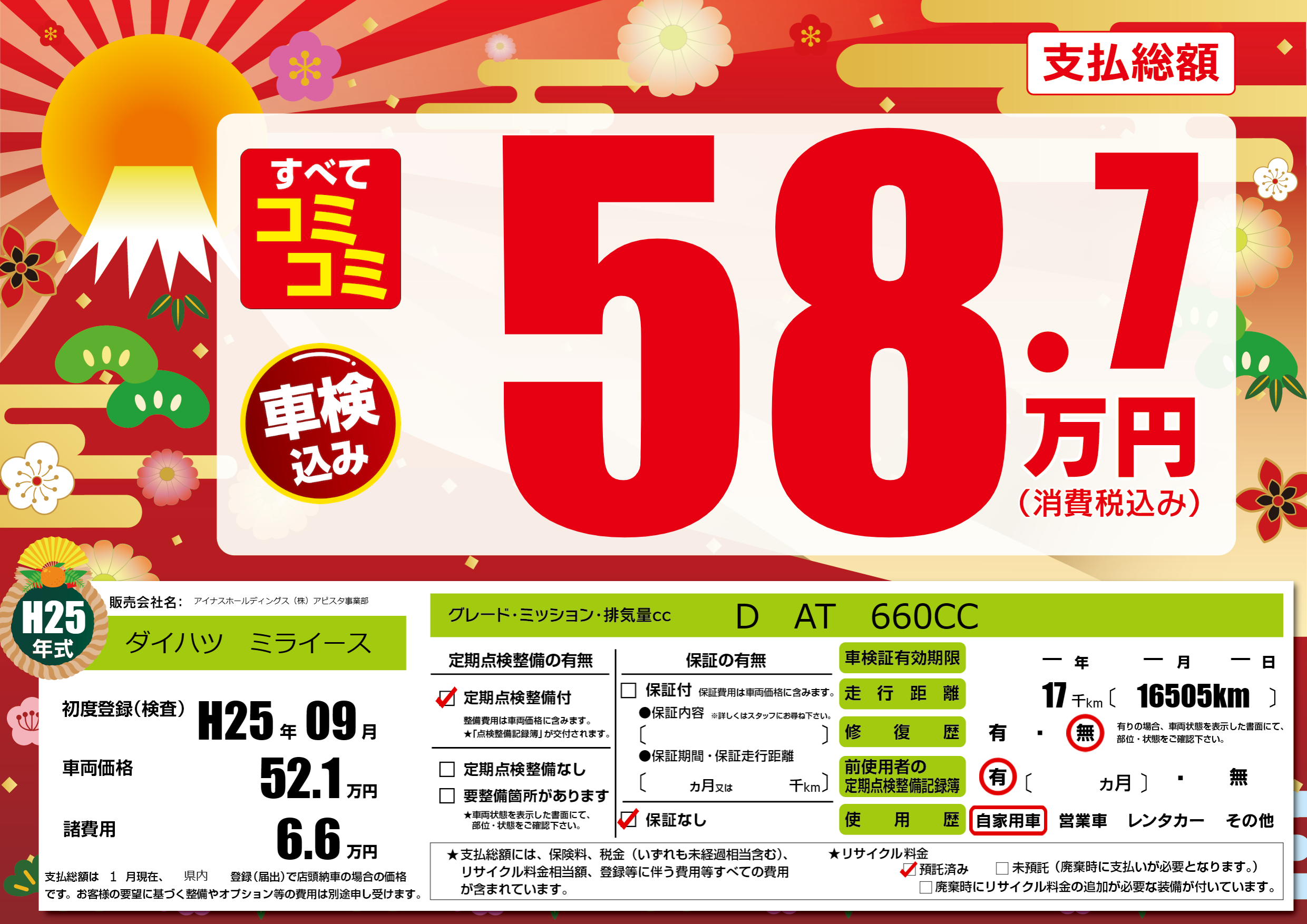 | 走行キロ | 1.7万km | 初年度登録 | H25年09月 |